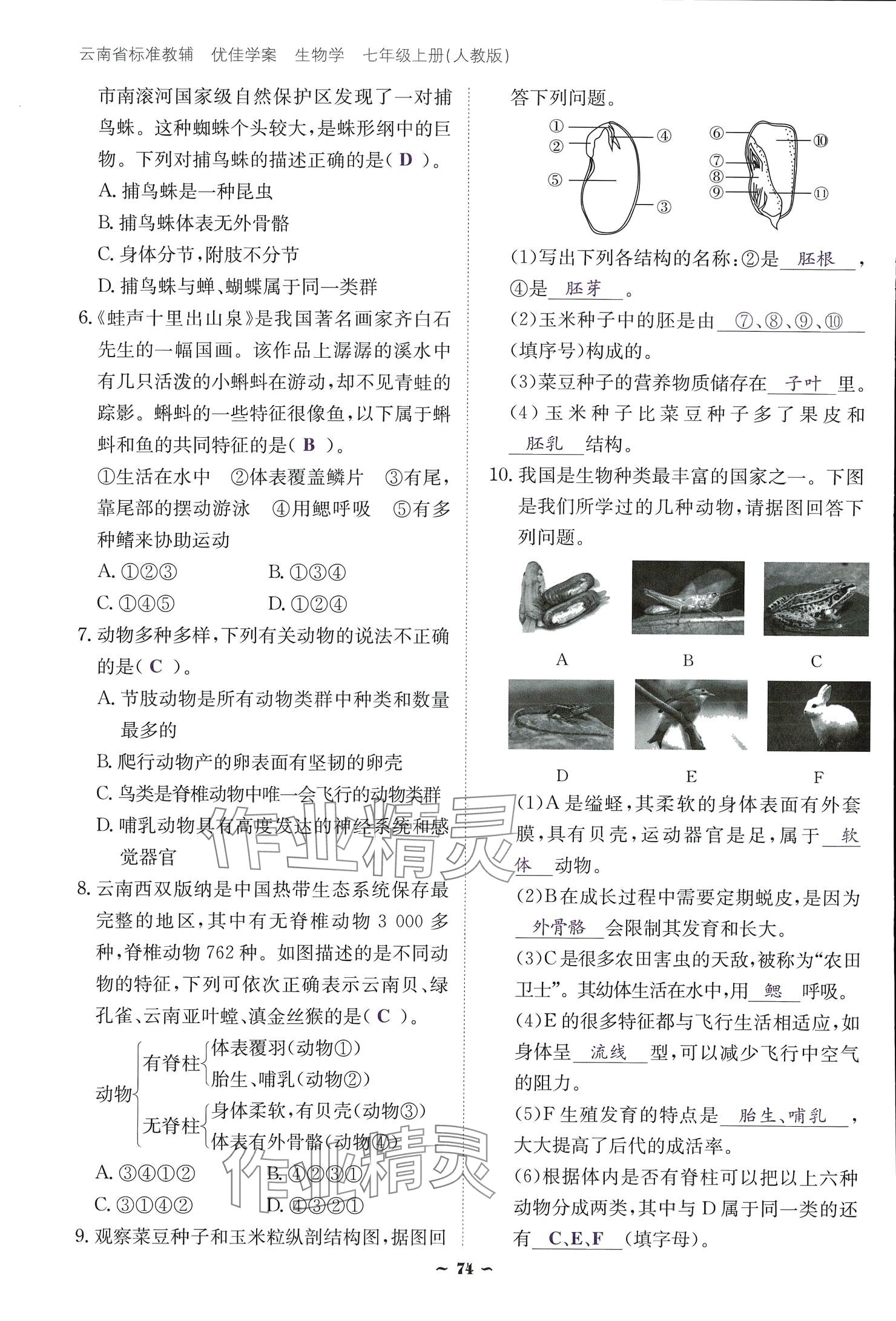注:目前有些书本章节名称可能整理的还不是很完善,但都是按照顺序排列的,请同学们按照顺序仔细查找。练习册 2024云南省标准教辅优佳学案七年级生物上册 答案主要是用来给同学们做完题方便对答案用的,请勿直接抄袭。