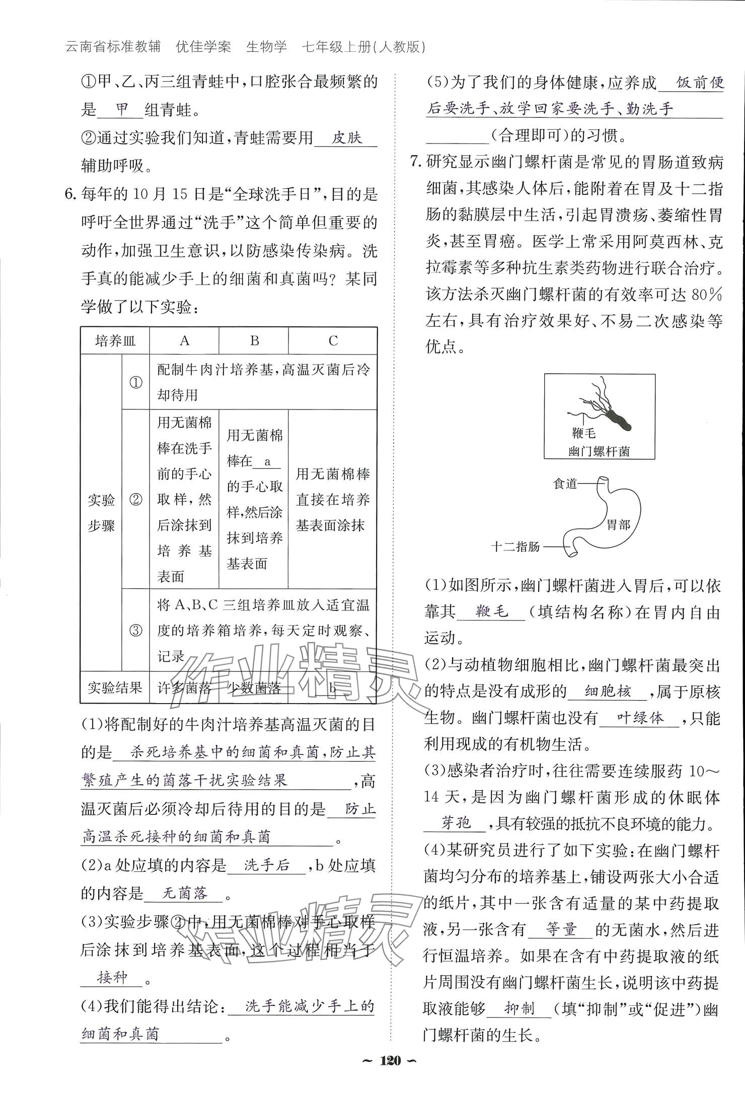 注:目前有些书本章节名称可能整理的还不是很完善,但都是按照顺序排列的,请同学们按照顺序仔细查找。练习册 2024云南省标准教辅优佳学案七年级生物上册 答案主要是用来给同学们做完题方便对答案用的,请勿直接抄袭。