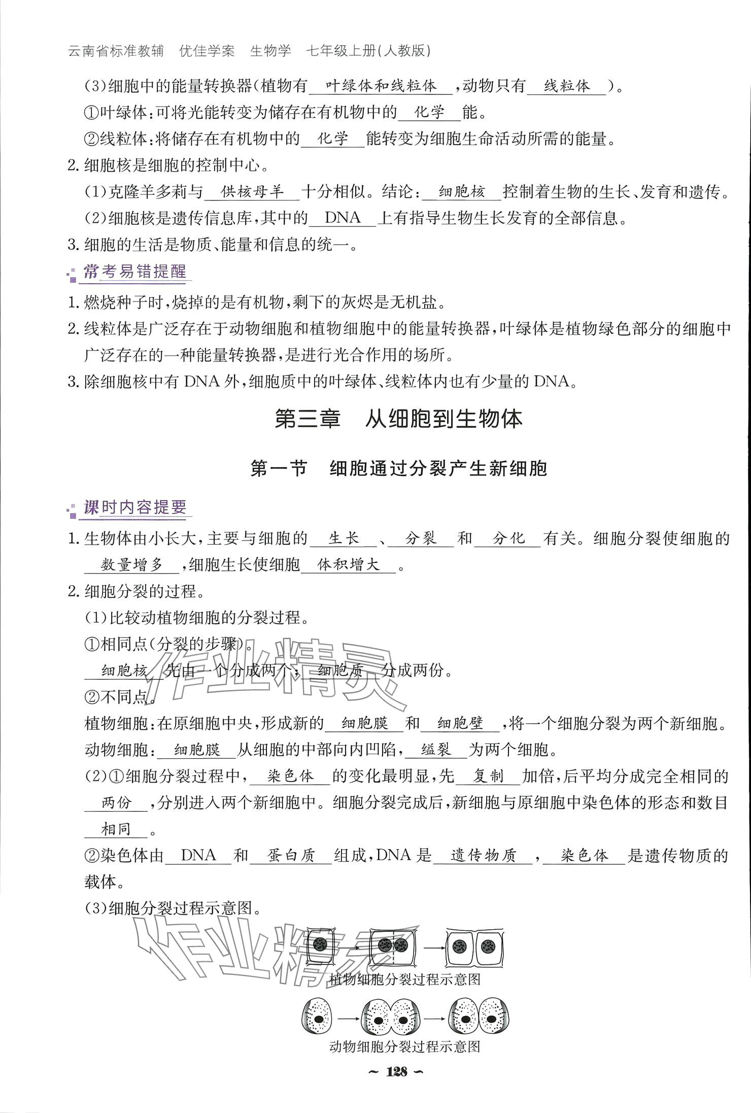 注:目前有些书本章节名称可能整理的还不是很完善,但都是按照顺序排列的,请同学们按照顺序仔细查找。练习册 2024云南省标准教辅优佳学案七年级生物上册 答案主要是用来给同学们做完题方便对答案用的,请勿直接抄袭。
