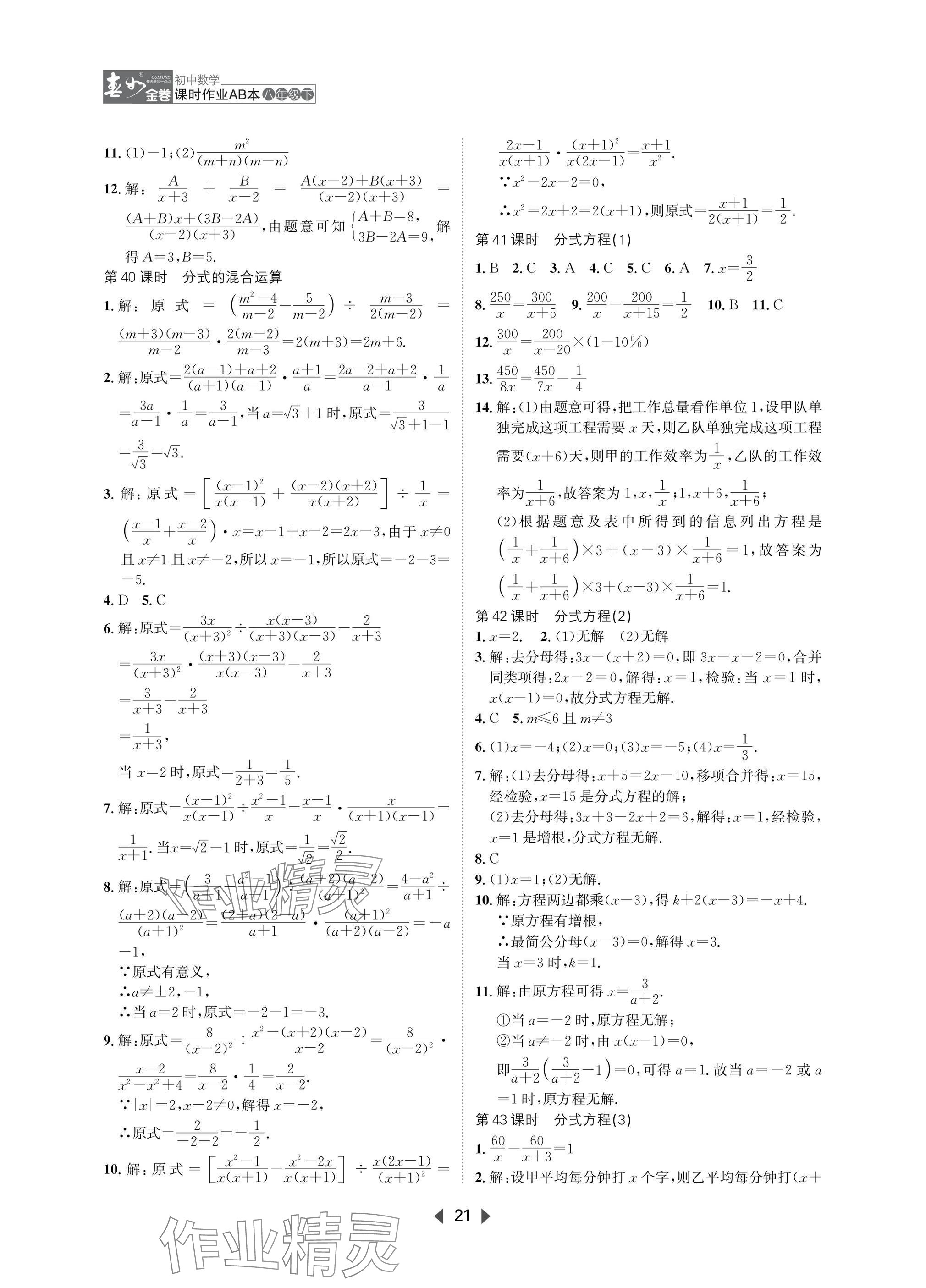 注:目前有些书本章节名称可能整理的还不是很完善,但都是按照顺序排列的,请同学们按照顺序仔细查找。练习册 2025年春如金卷课时作业AB本八年级数学下册北师大版 答案主要是用来给同学们做完题方便对答案用的,请勿直接抄袭。