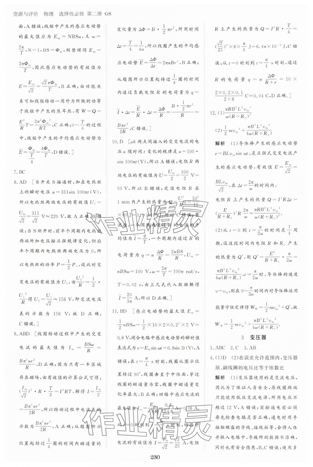 2024年资源与评价黑龙江教育出版社高中物理选择性必修第二册人教版