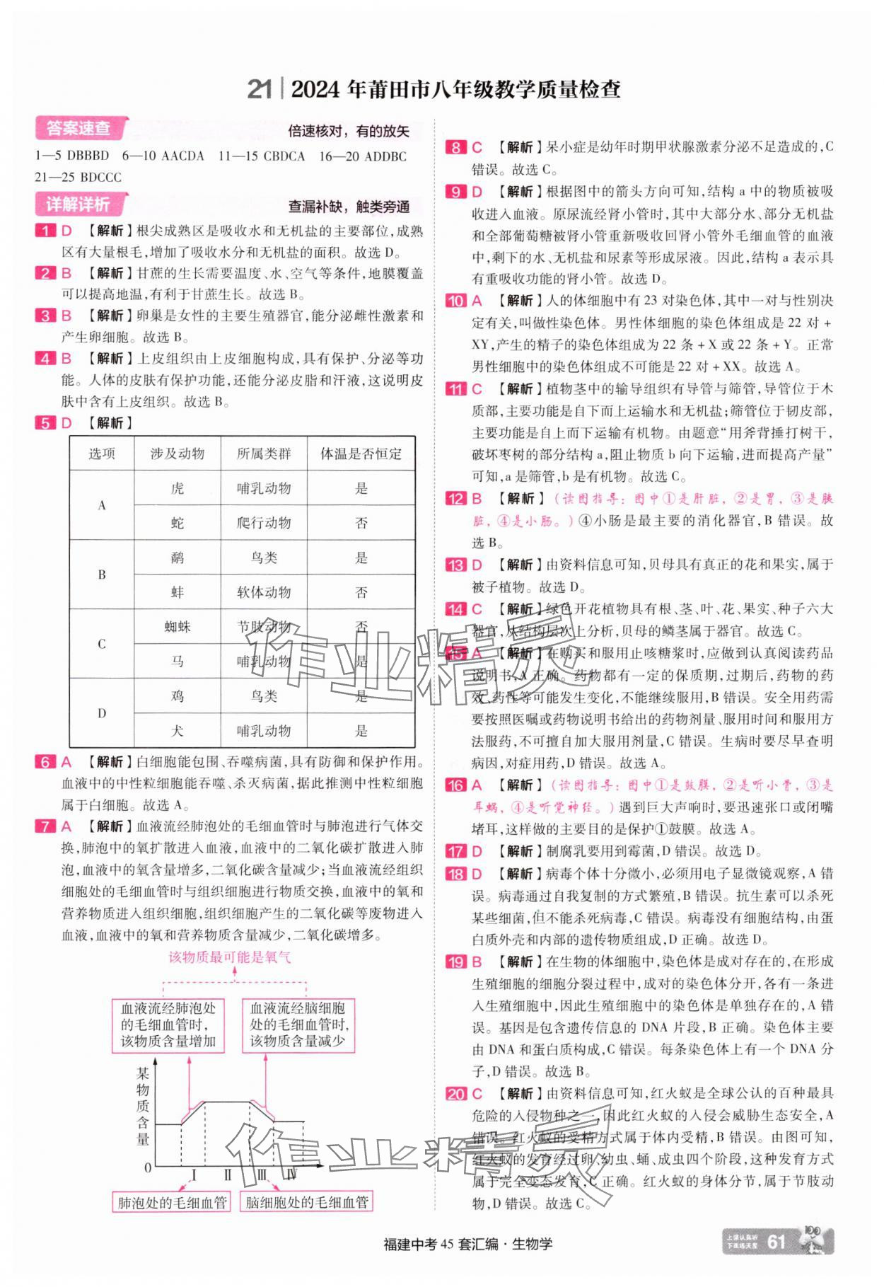 注:目前有些书本章节名称可能整理的还不是很完善,但都是按照顺序排列的,请同学们按照顺序仔细查找。练习册 2025年金考卷福建中考45套汇编八年级生物 答案主要是用来给同学们做完题方便对答案用的,请勿直接抄袭。