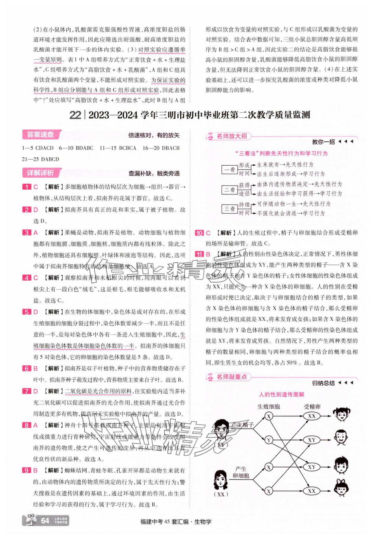 注:目前有些书本章节名称可能整理的还不是很完善,但都是按照顺序排列的,请同学们按照顺序仔细查找。练习册 2025年金考卷福建中考45套汇编八年级生物 答案主要是用来给同学们做完题方便对答案用的,请勿直接抄袭。