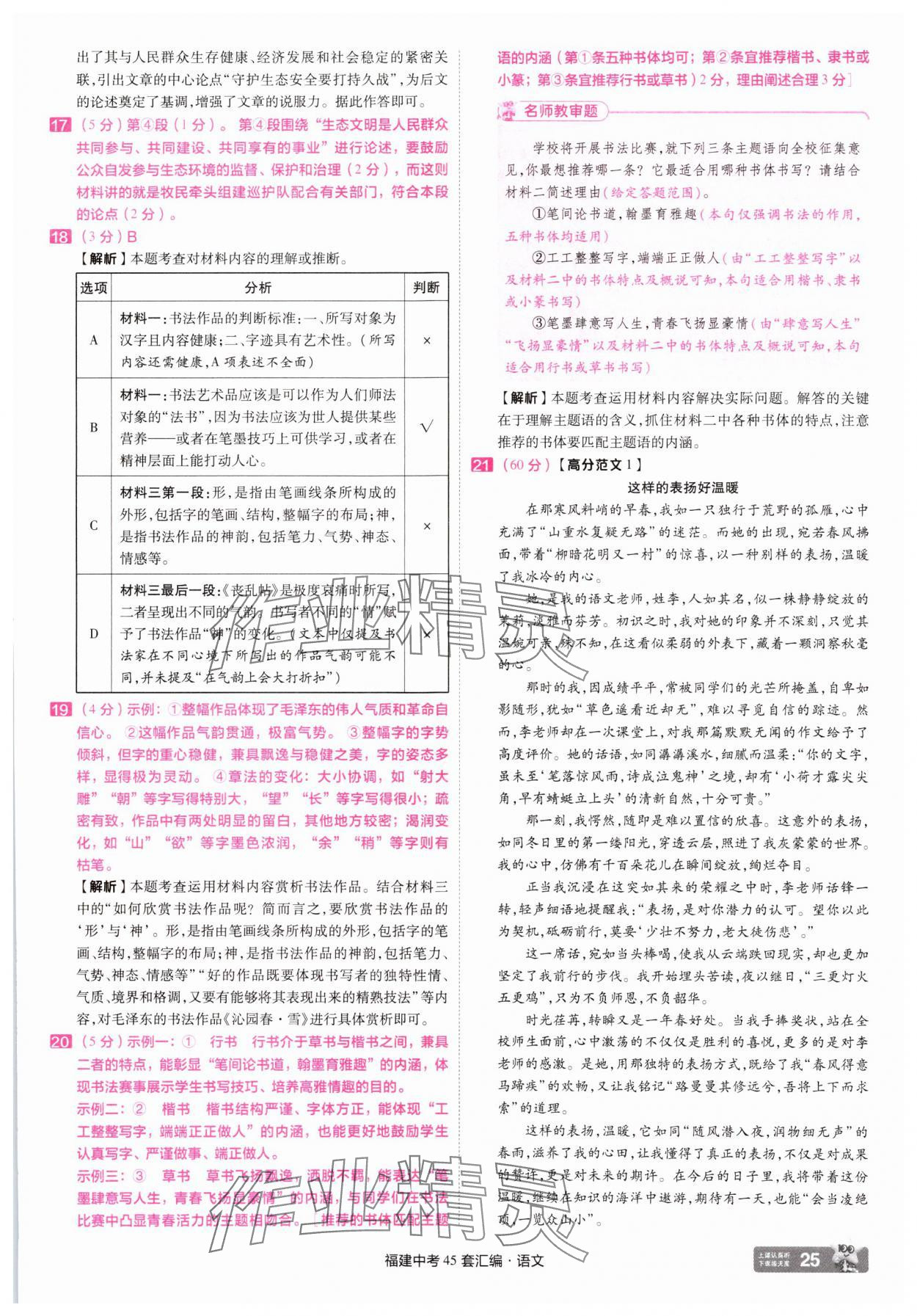 《2025年金考卷福建中考45套汇编语文》