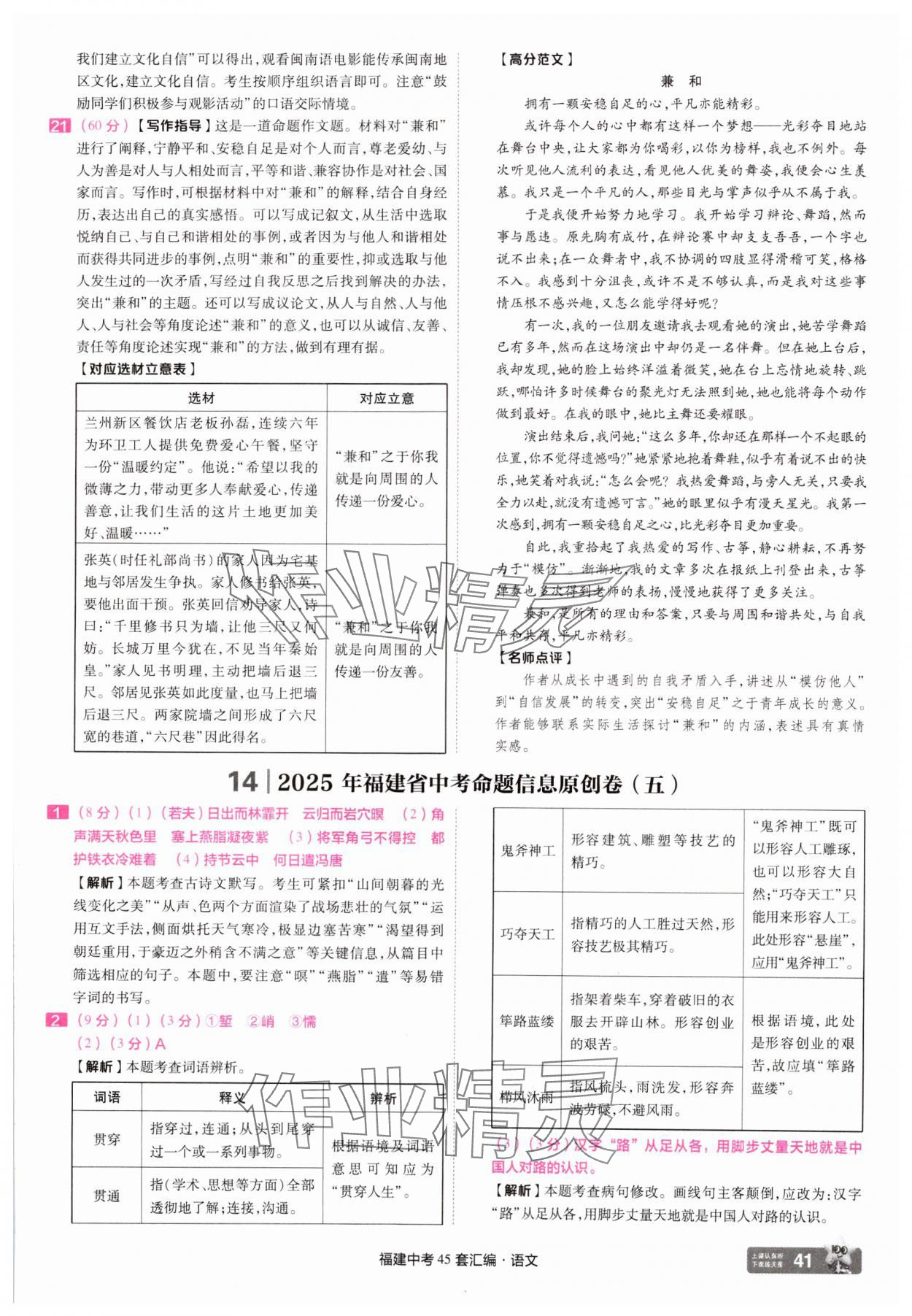 注:目前有些书本章节名称可能整理的还不是很完善,但都是按照顺序排列的,请同学们按照顺序仔细查找。练习册 2025年金考卷福建中考45套汇编语文 答案主要是用来给同学们做完题方便对答案用的,请勿直接抄袭。