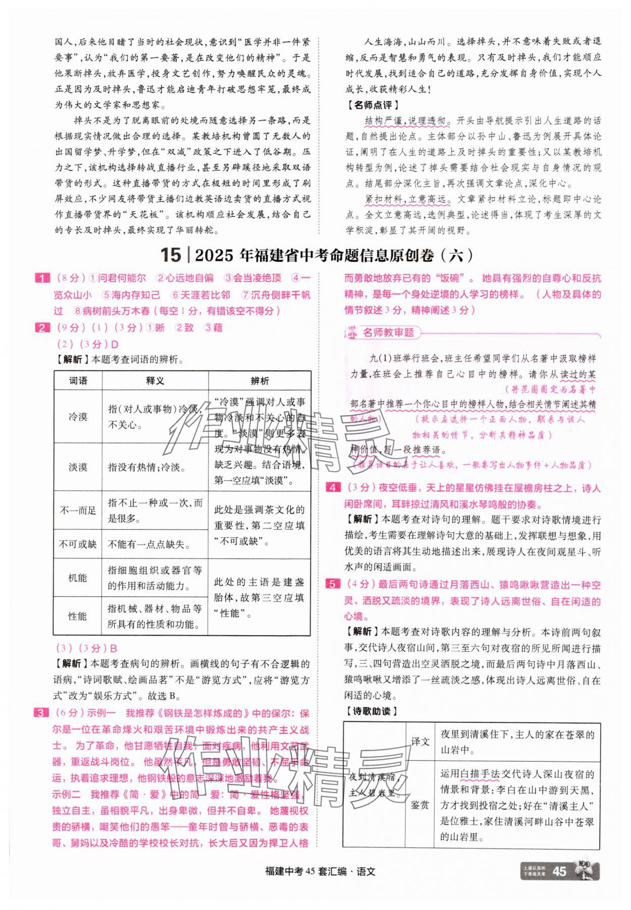 《2025年金考卷福建中考45套汇编语文》