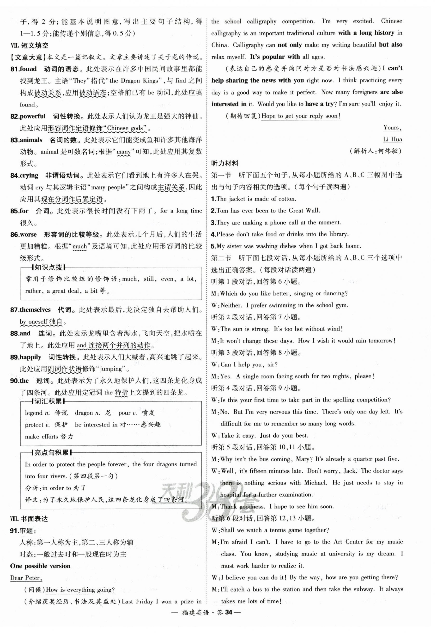 注:目前有些书本章节名称可能整理的还不是很完善,但都是按照顺序排列的,请同学们按照顺序仔细查找。练习册 2025年天利38套中考试题精选英语福建专版 答案主要是用来给同学们做完题方便对答案用的,请勿直接抄袭。