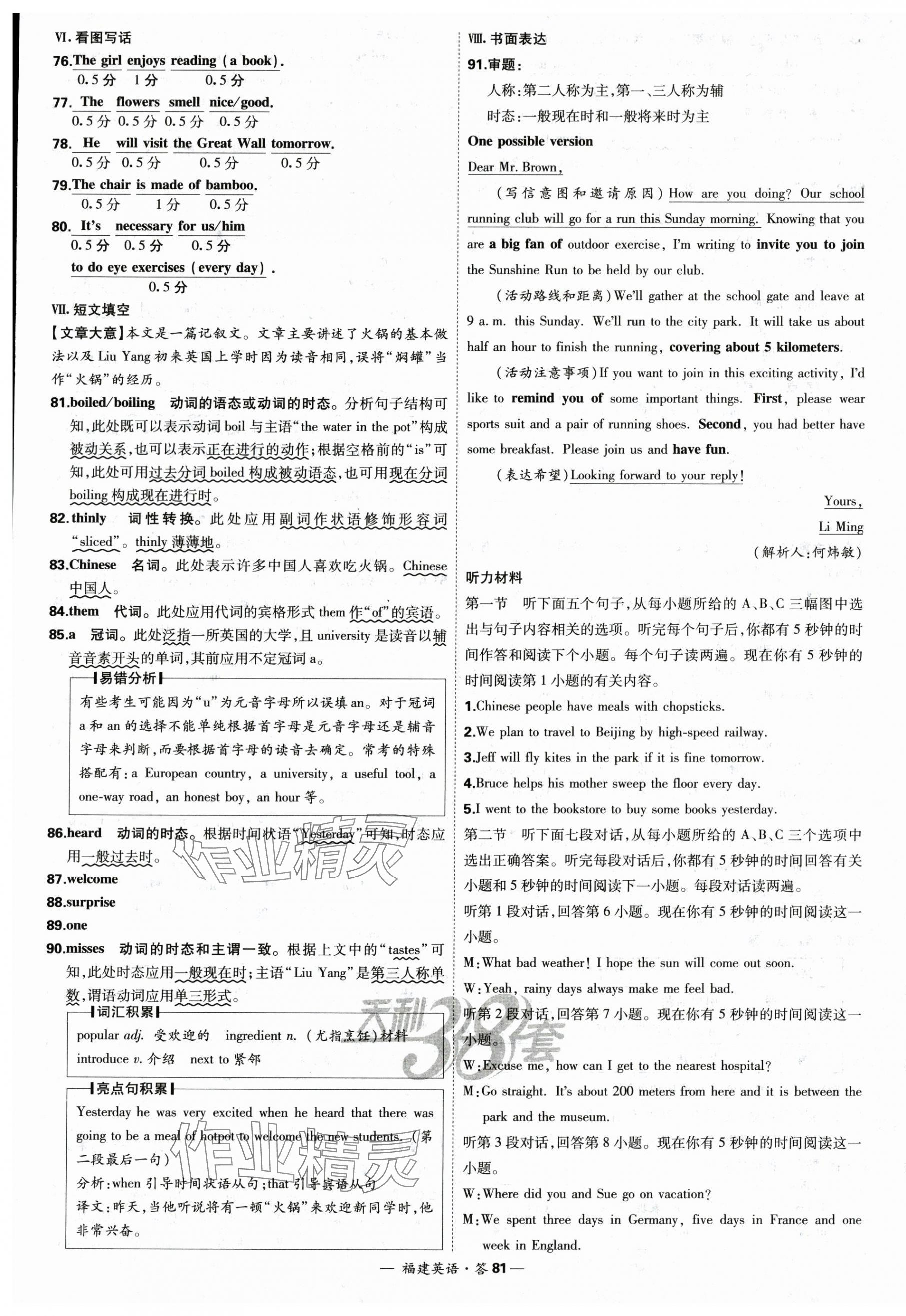注:目前有些书本章节名称可能整理的还不是很完善,但都是按照顺序排列的,请同学们按照顺序仔细查找。练习册 2025年天利38套中考试题精选英语福建专版 答案主要是用来给同学们做完题方便对答案用的,请勿直接抄袭。