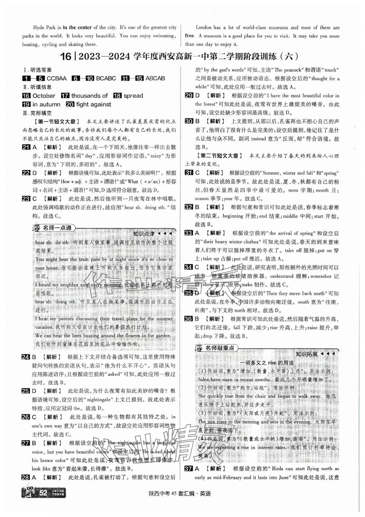 注:目前有些书本章节名称可能整理的还不是很完善,但都是按照顺序排列的,请同学们按照顺序仔细查找。练习册 2025年金考卷45套汇编英语陕西专版 答案主要是用来给同学们做完题方便对答案用的,请勿直接抄袭。