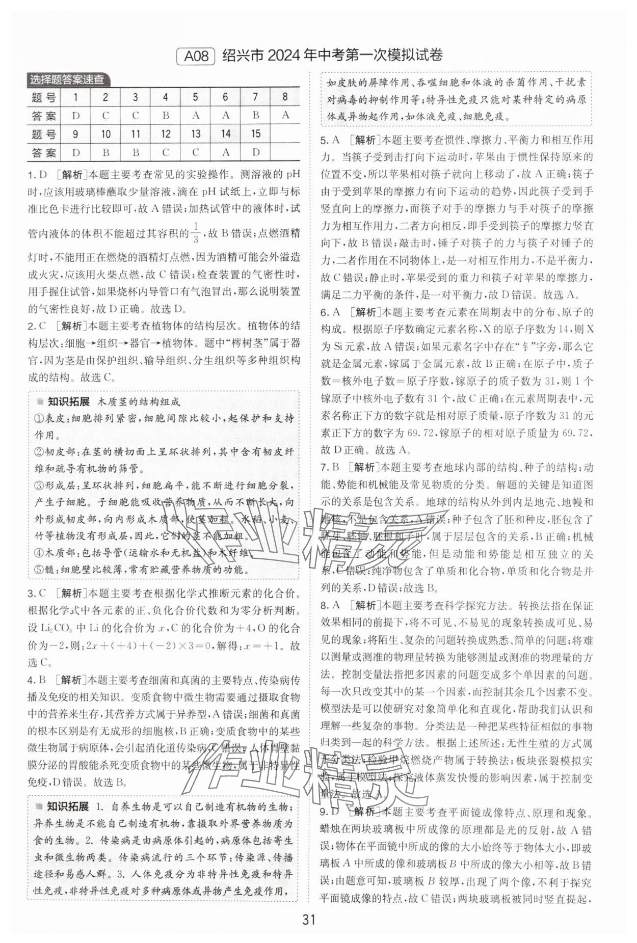 注:目前有些书本章节名称可能整理的还不是很完善,但都是按照顺序排列的,请同学们按照顺序仔细查找。练习册 2025年春雨教育考必胜中考试卷精选科学浙江专版 答案主要是用来给同学们做完题方便对答案用的,请勿直接抄袭。