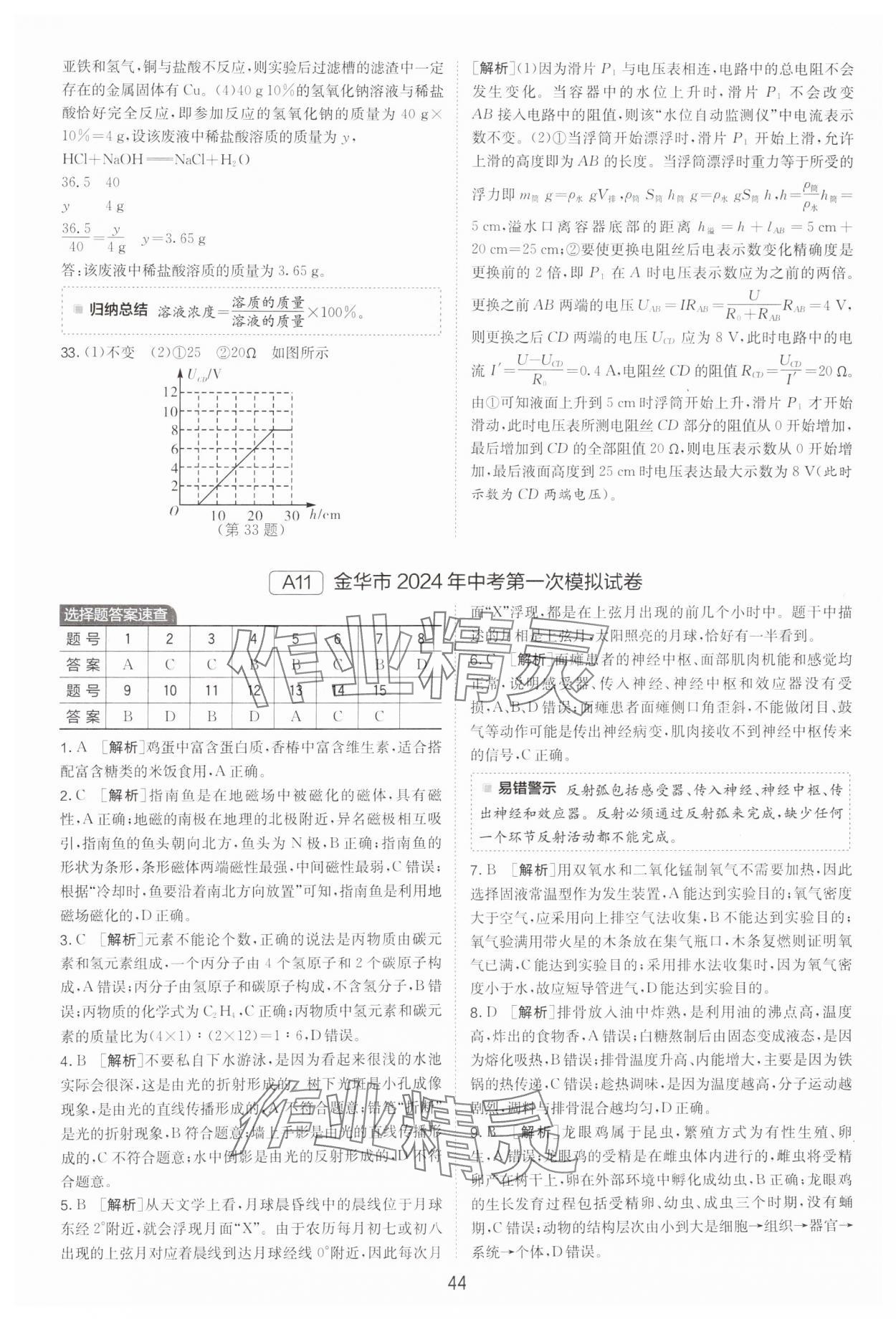 注:目前有些书本章节名称可能整理的还不是很完善,但都是按照顺序排列的,请同学们按照顺序仔细查找。练习册 2025年春雨教育考必胜中考试卷精选科学浙江专版 答案主要是用来给同学们做完题方便对答案用的,请勿直接抄袭。