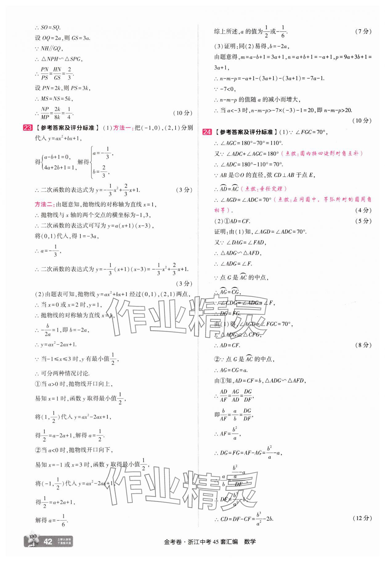 《2025年金考卷浙江中考45套汇编数学浙江专版》