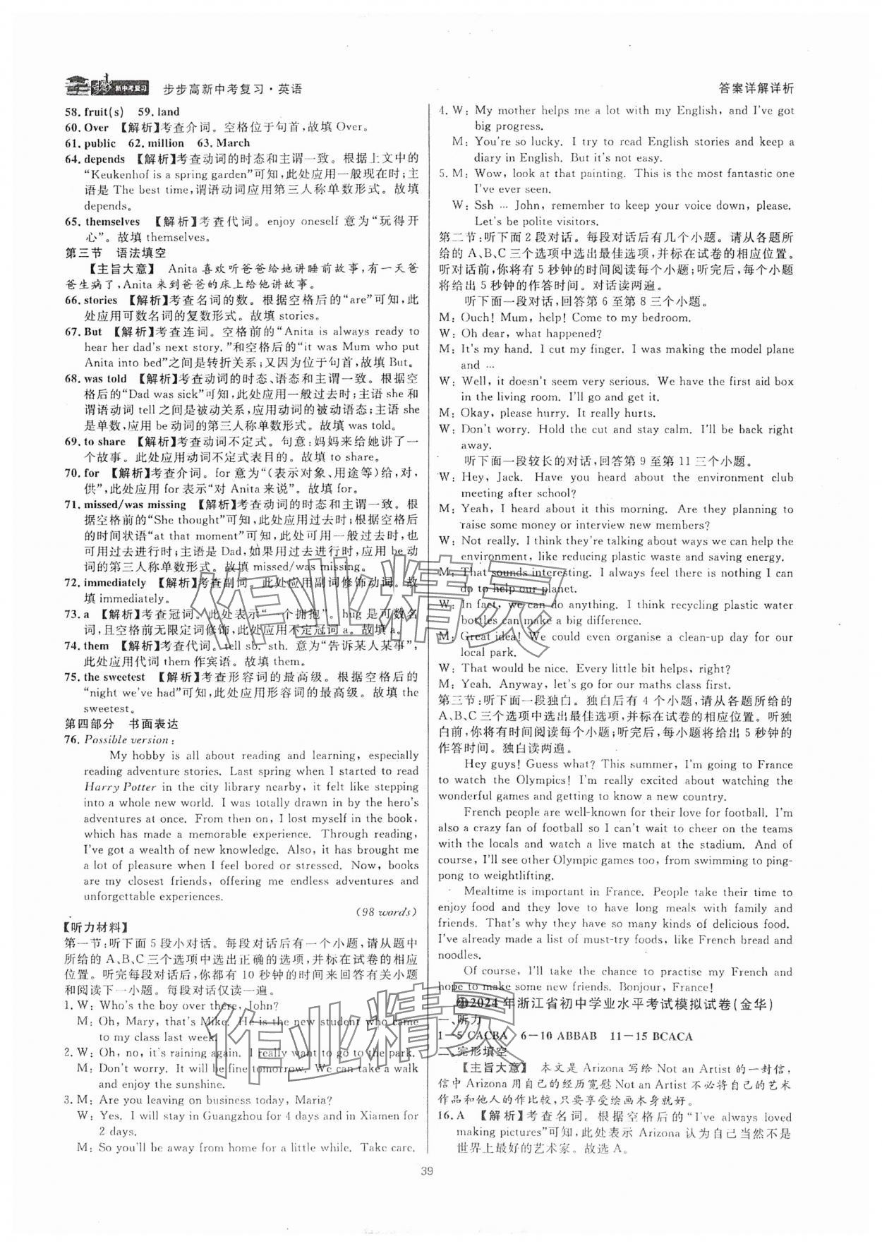 注:目前有些书本章节名称可能整理的还不是很完善,但都是按照顺序排列的,请同学们按照顺序仔细查找。练习册 2025年步步高中考复习英语浙江专版 答案主要是用来给同学们做完题方便对答案用的,请勿直接抄袭。