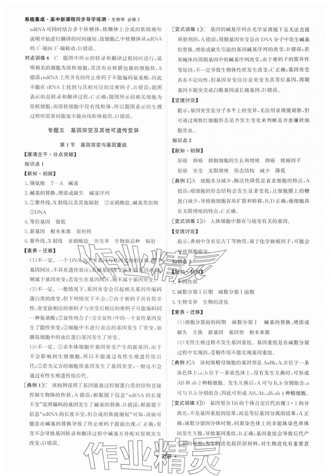 注:目前有些书本章节名称可能整理的还不是很完善,但都是按照顺序排列的,请同学们按照顺序仔细查找。练习册 2024年系统集成新课程同步导学练测高中生物必修2 答案主要是用来给同学们做完题方便对答案用的,请勿直接抄袭。