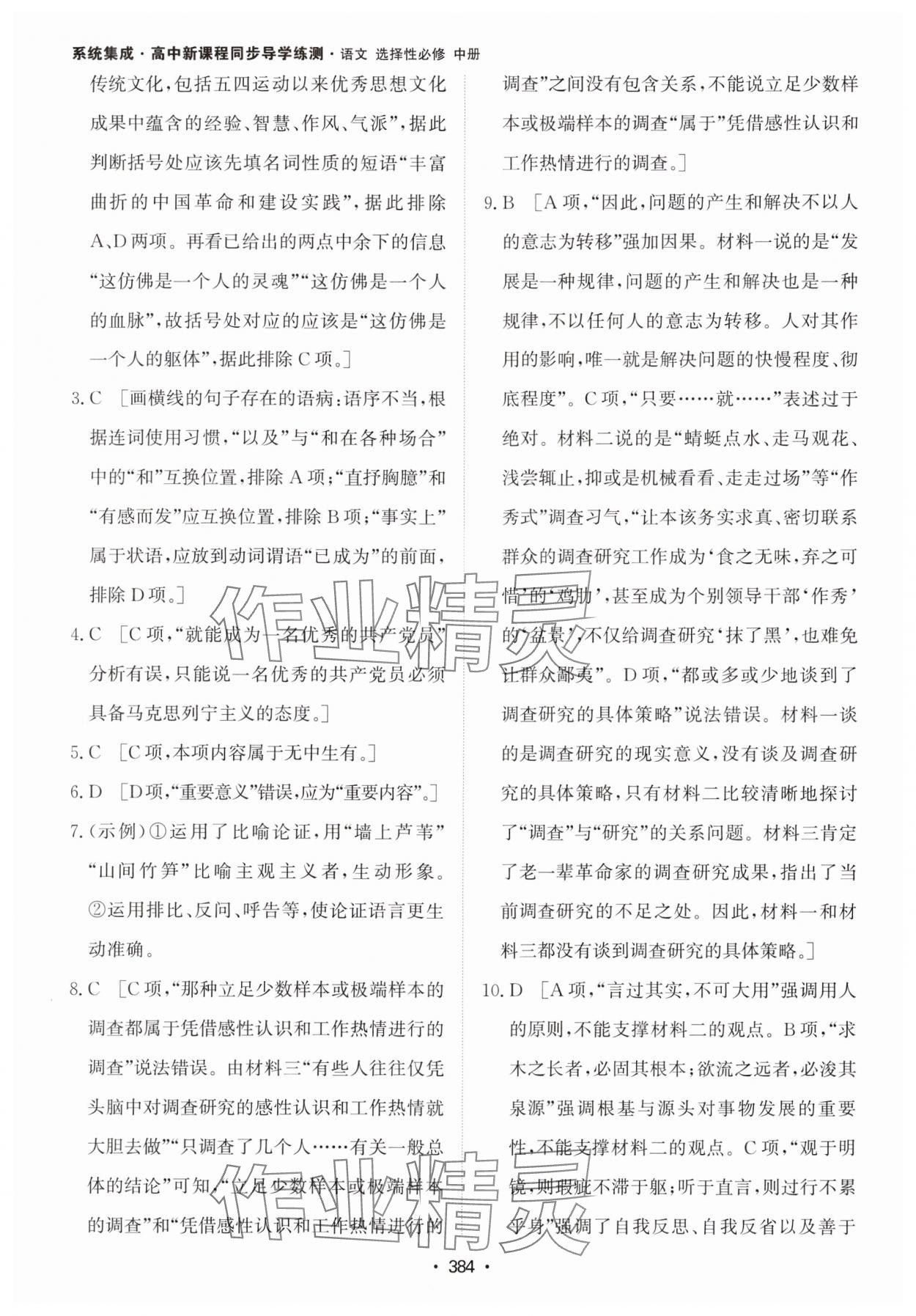 注:目前有些书本章节名称可能整理的还不是很完善,但都是按照顺序排列的,请同学们按照顺序仔细查找。练习册 2024年系统集成新课程同步导学练测高中语文选择性必修中册人教版 答案主要是用来给同学们做完题方便对答案用的,请勿直接抄袭。