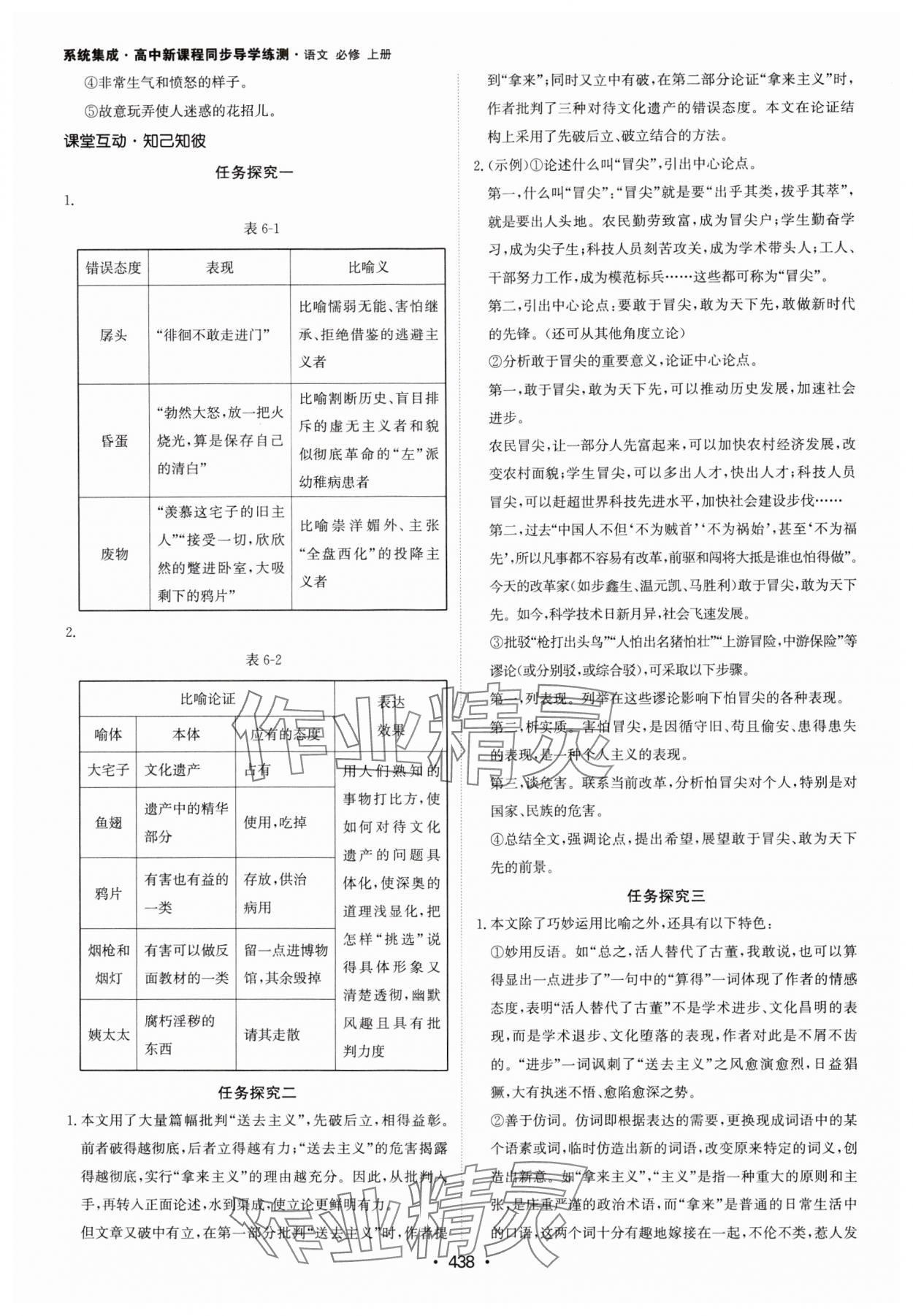 注:目前有些书本章节名称可能整理的还不是很完善,但都是按照顺序排列的,请同学们按照顺序仔细查找。练习册 2024年系统集成新课程同步导学练测高中语文必修上册人教版 答案主要是用来给同学们做完题方便对答案用的,请勿直接抄袭。