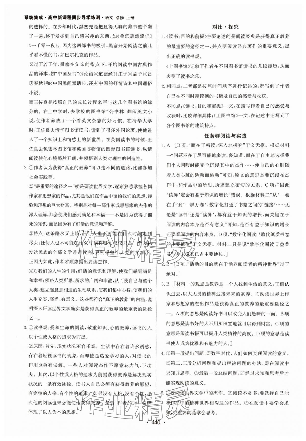 注:目前有些书本章节名称可能整理的还不是很完善,但都是按照顺序排列的,请同学们按照顺序仔细查找。练习册 2024年系统集成新课程同步导学练测高中语文必修上册人教版 答案主要是用来给同学们做完题方便对答案用的,请勿直接抄袭。