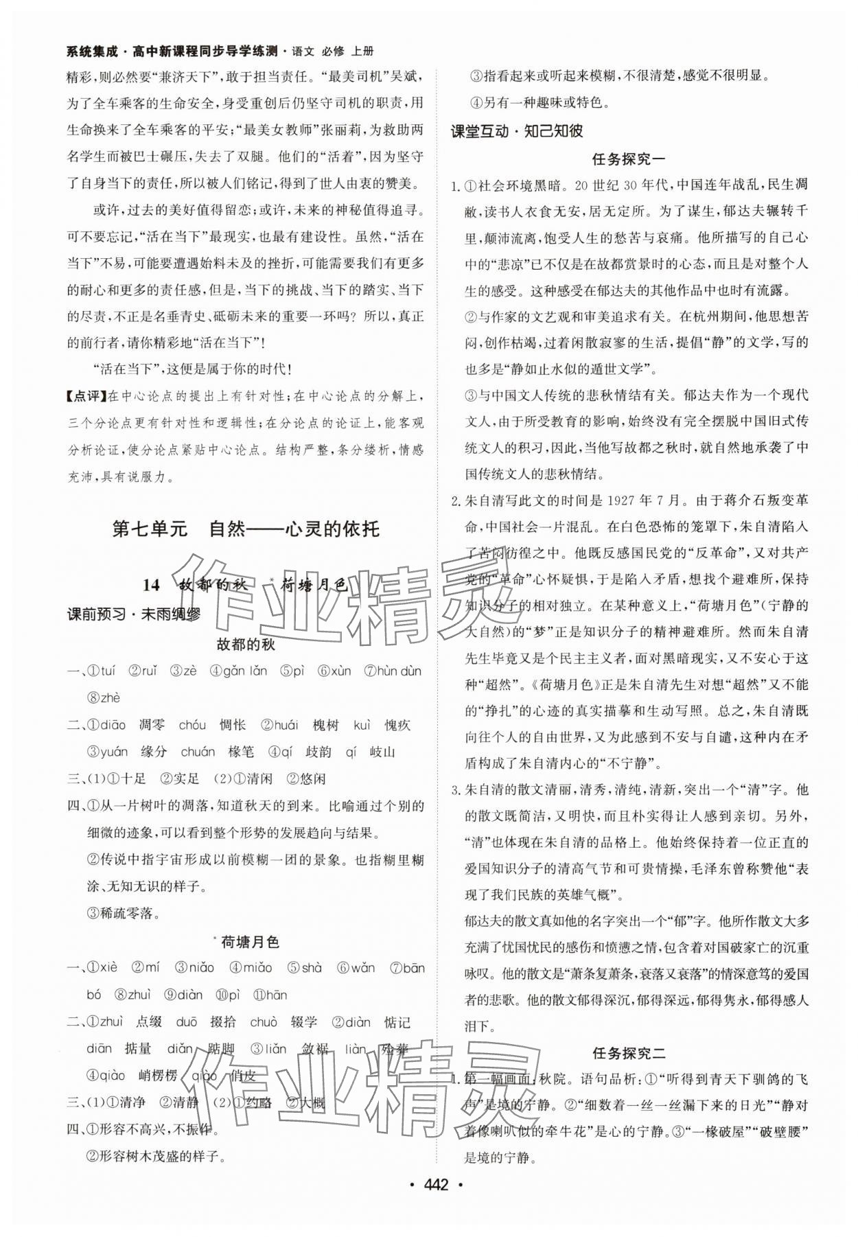 注:目前有些书本章节名称可能整理的还不是很完善,但都是按照顺序排列的,请同学们按照顺序仔细查找。练习册 2024年系统集成新课程同步导学练测高中语文必修上册人教版 答案主要是用来给同学们做完题方便对答案用的,请勿直接抄袭。