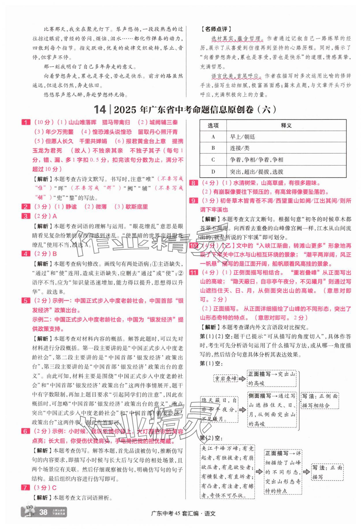 2025年金考卷45套汇编语文广东专版