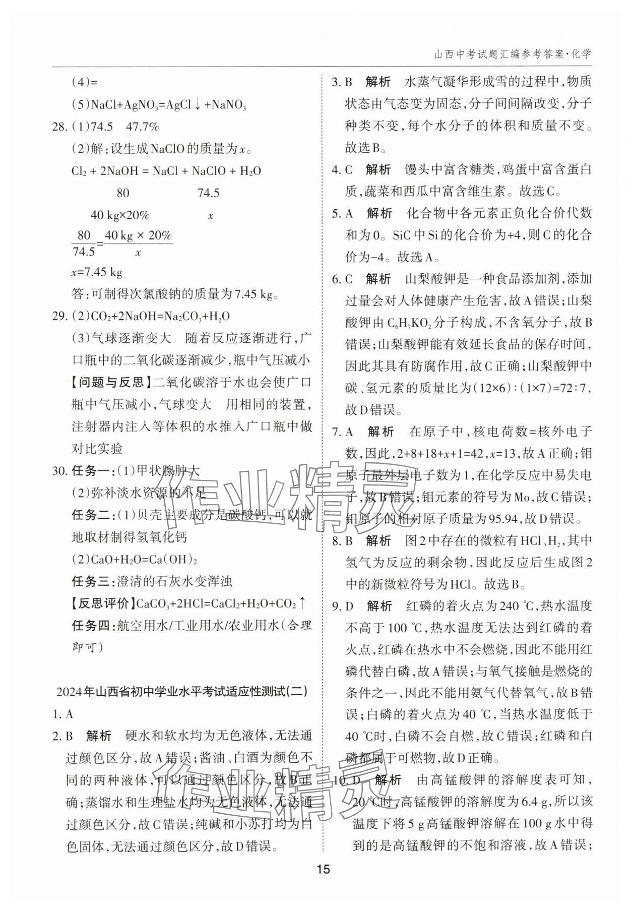 注:目前有些书本章节名称可能整理的还不是很完善,但都是按照顺序排列的,请同学们按照顺序仔细查找。练习册 2025年山西中考试题汇编化学 答案主要是用来给同学们做完题方便对答案用的,请勿直接抄袭。
