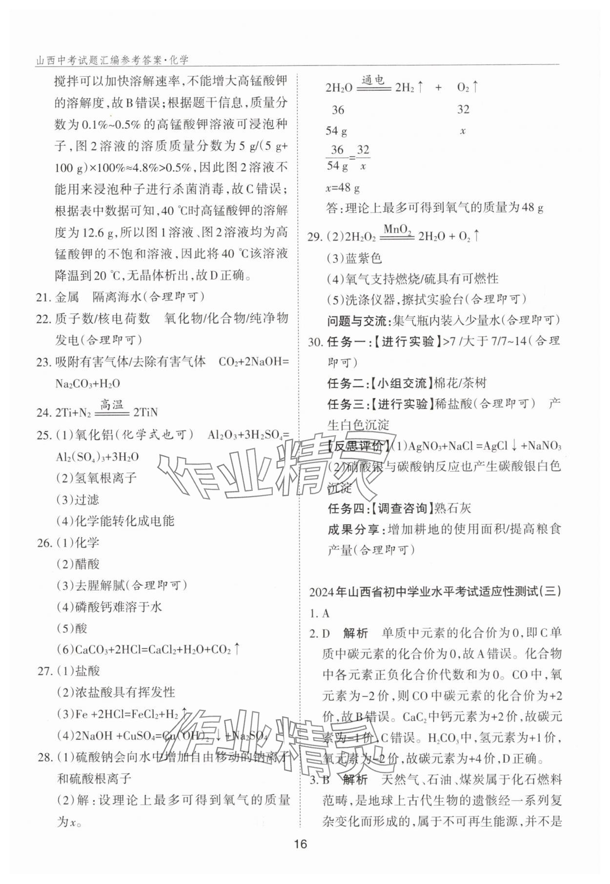 注:目前有些书本章节名称可能整理的还不是很完善,但都是按照顺序排列的,请同学们按照顺序仔细查找。练习册 2025年山西中考试题汇编化学 答案主要是用来给同学们做完题方便对答案用的,请勿直接抄袭。