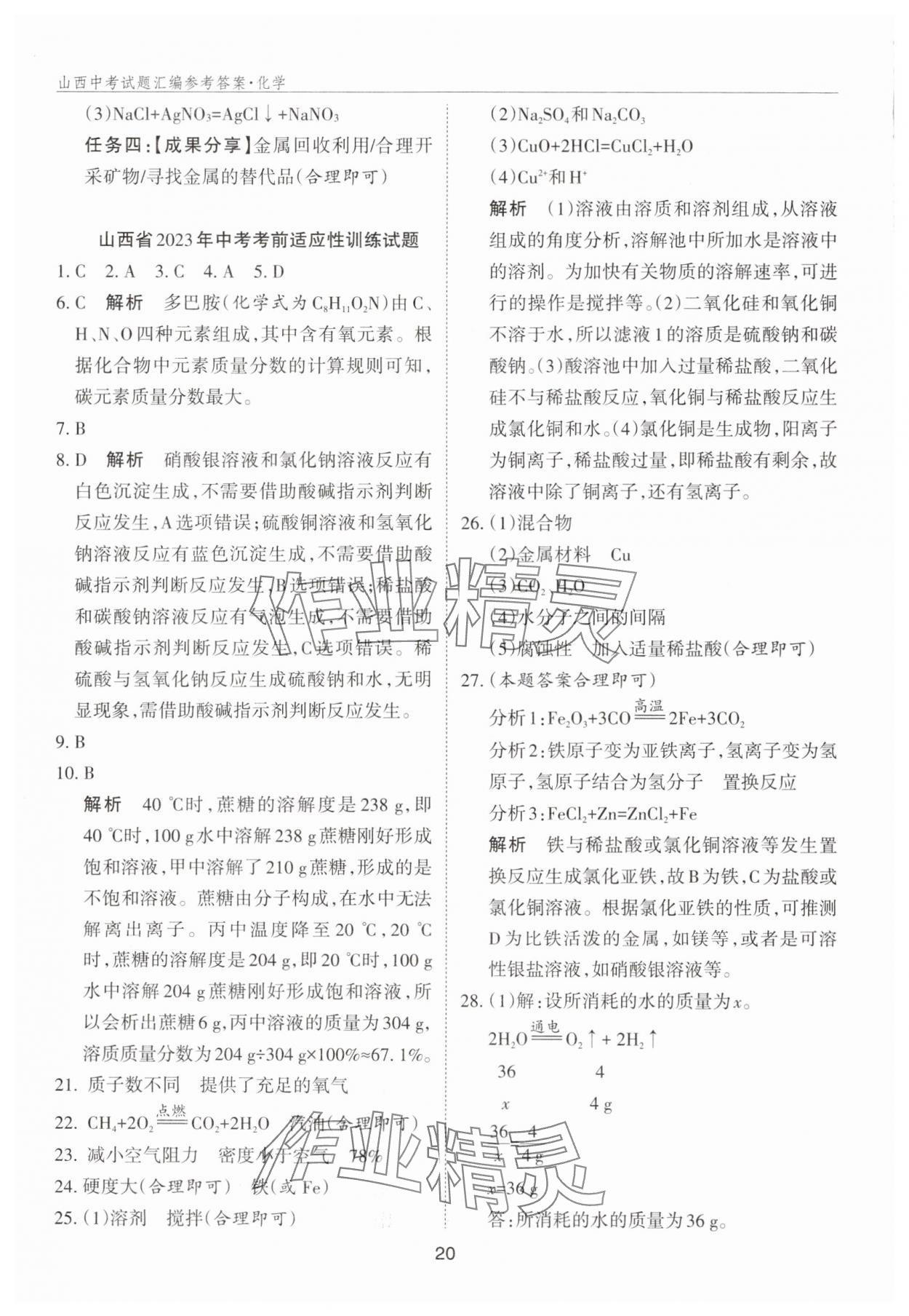 注:目前有些书本章节名称可能整理的还不是很完善,但都是按照顺序排列的,请同学们按照顺序仔细查找。练习册 2025年山西中考试题汇编化学 答案主要是用来给同学们做完题方便对答案用的,请勿直接抄袭。
