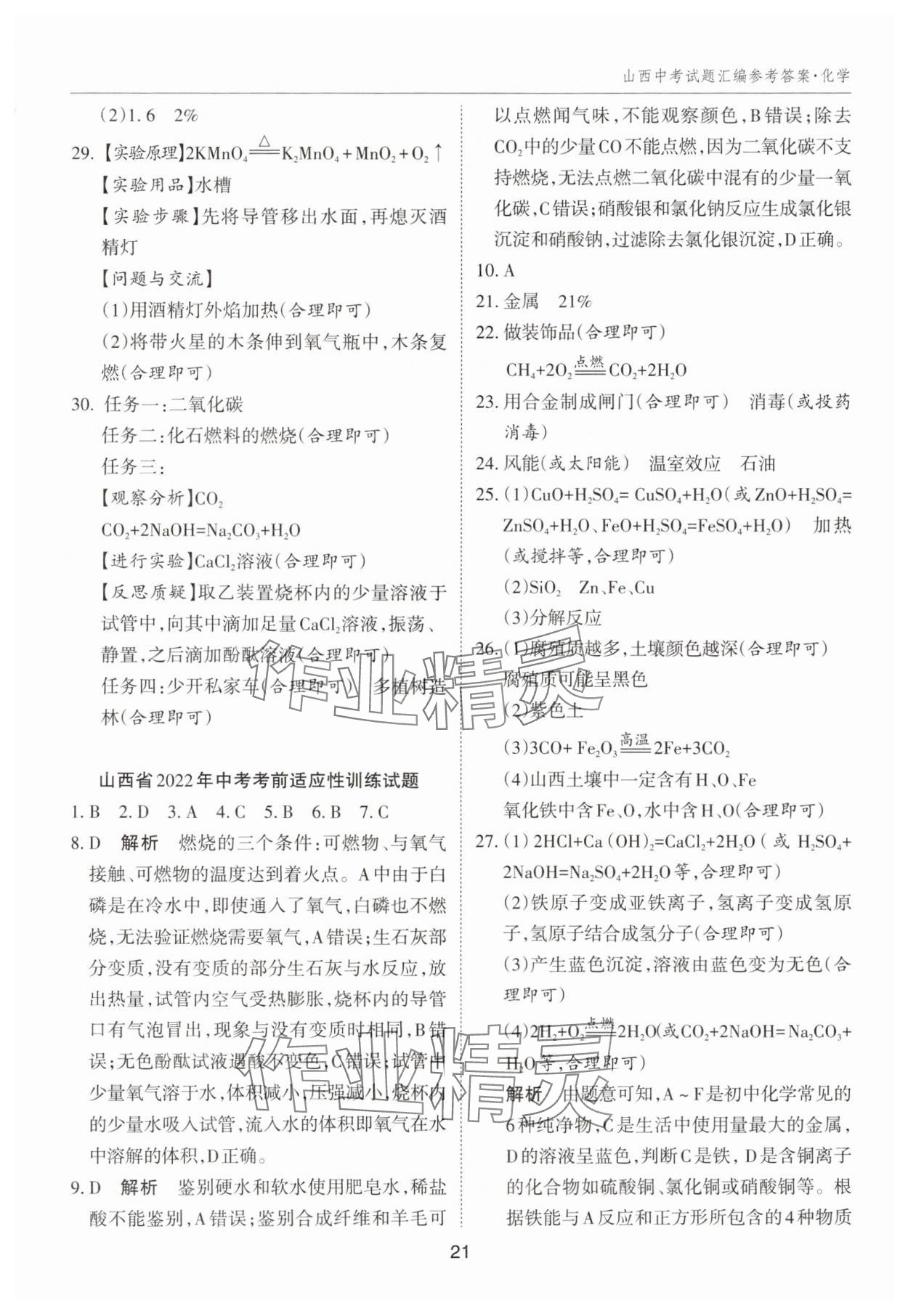 注:目前有些书本章节名称可能整理的还不是很完善,但都是按照顺序排列的,请同学们按照顺序仔细查找。练习册 2025年山西中考试题汇编化学 答案主要是用来给同学们做完题方便对答案用的,请勿直接抄袭。