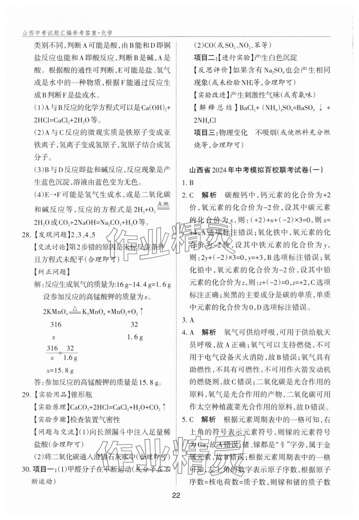 注:目前有些书本章节名称可能整理的还不是很完善,但都是按照顺序排列的,请同学们按照顺序仔细查找。练习册 2025年山西中考试题汇编化学 答案主要是用来给同学们做完题方便对答案用的,请勿直接抄袭。