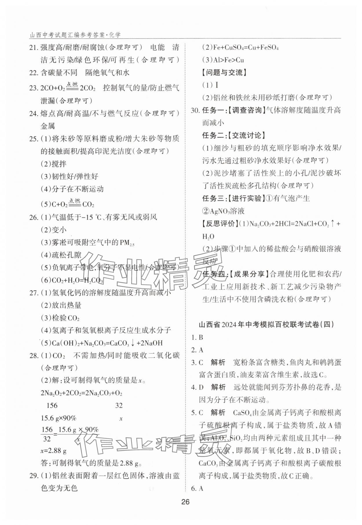 注:目前有些书本章节名称可能整理的还不是很完善,但都是按照顺序排列的,请同学们按照顺序仔细查找。练习册 2025年山西中考试题汇编化学 答案主要是用来给同学们做完题方便对答案用的,请勿直接抄袭。