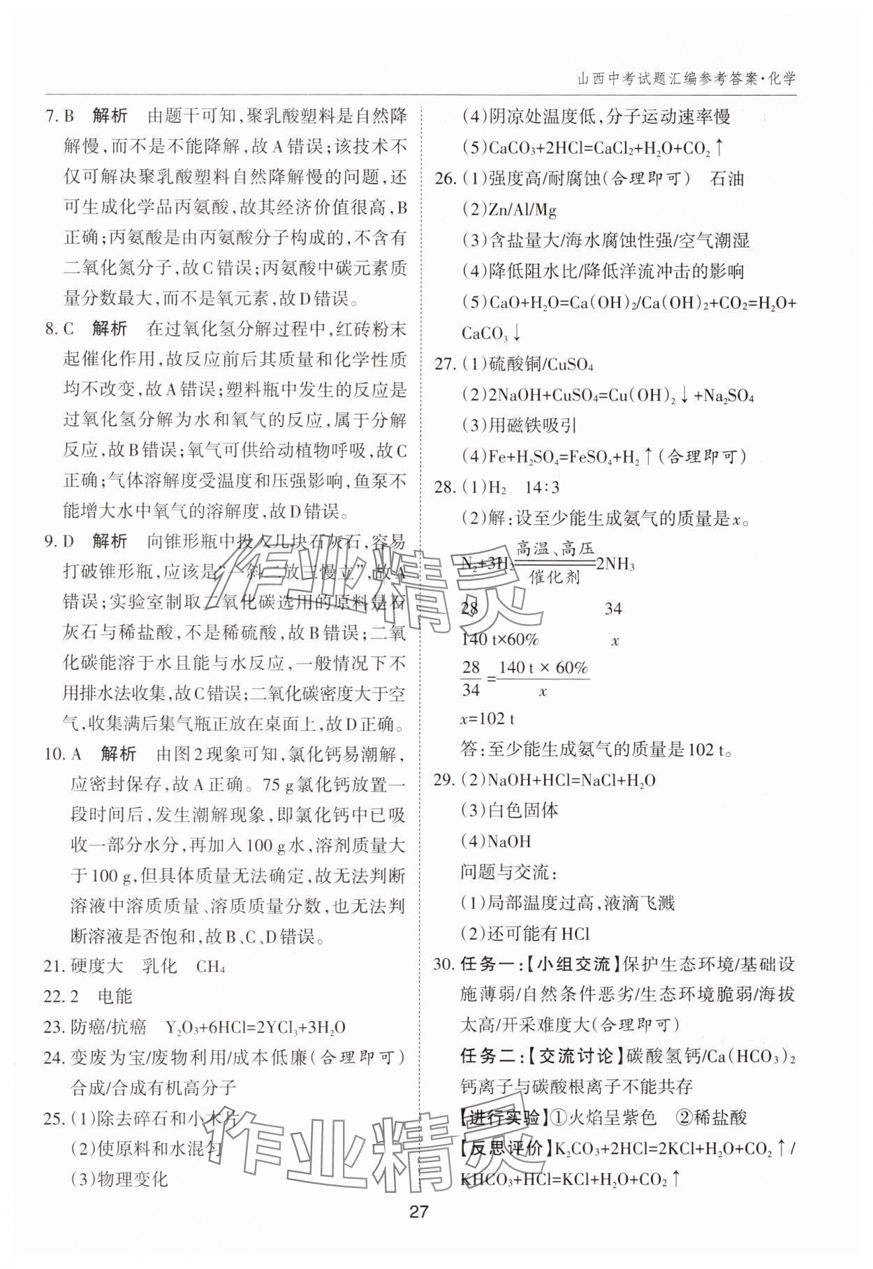 注:目前有些书本章节名称可能整理的还不是很完善,但都是按照顺序排列的,请同学们按照顺序仔细查找。练习册 2025年山西中考试题汇编化学 答案主要是用来给同学们做完题方便对答案用的,请勿直接抄袭。