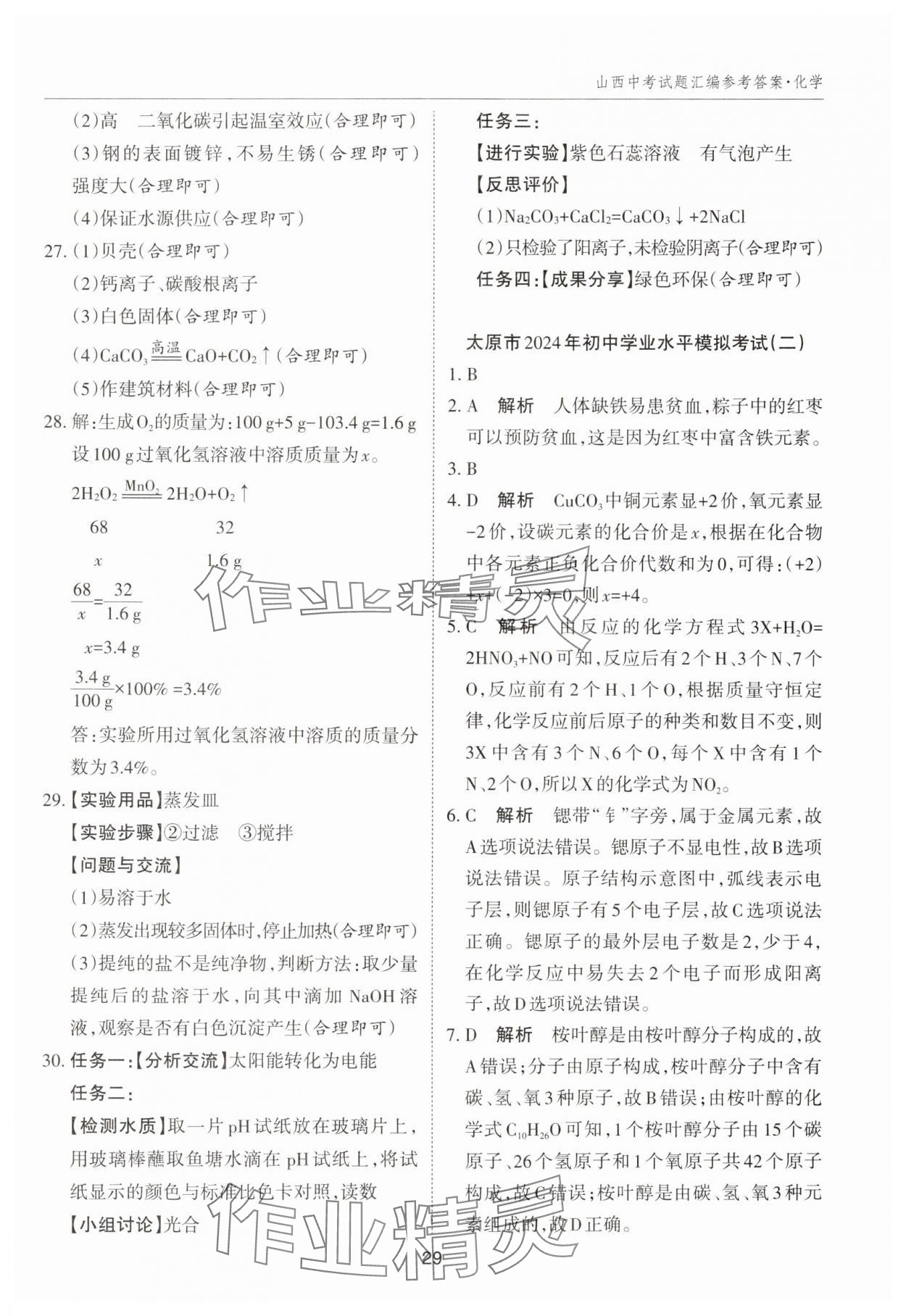 注:目前有些书本章节名称可能整理的还不是很完善,但都是按照顺序排列的,请同学们按照顺序仔细查找。练习册 2025年山西中考试题汇编化学 答案主要是用来给同学们做完题方便对答案用的,请勿直接抄袭。