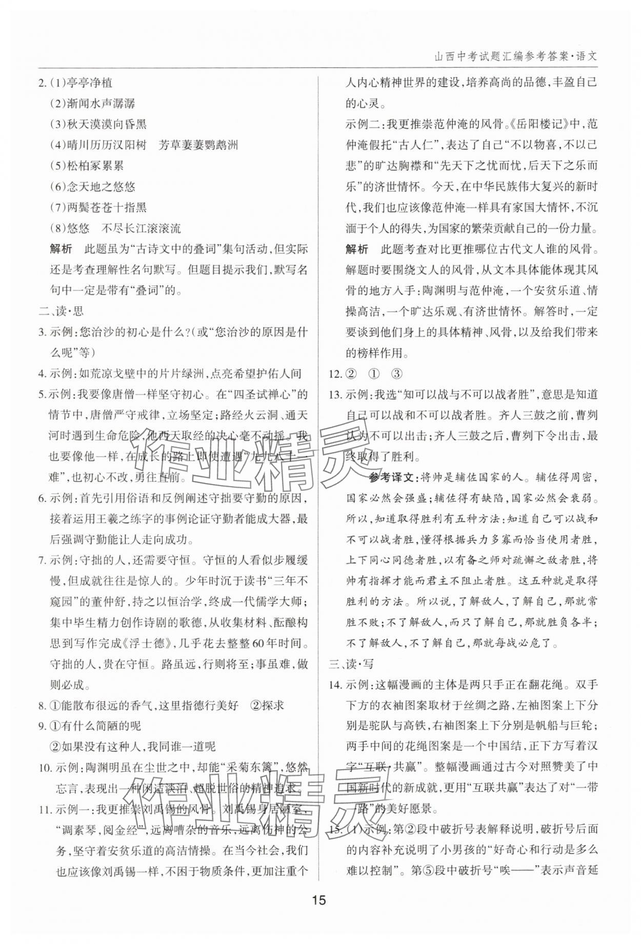 注:目前有些书本章节名称可能整理的还不是很完善,但都是按照顺序排列的,请同学们按照顺序仔细查找。练习册 2025年山西中考试题汇编语文 答案主要是用来给同学们做完题方便对答案用的,请勿直接抄袭。