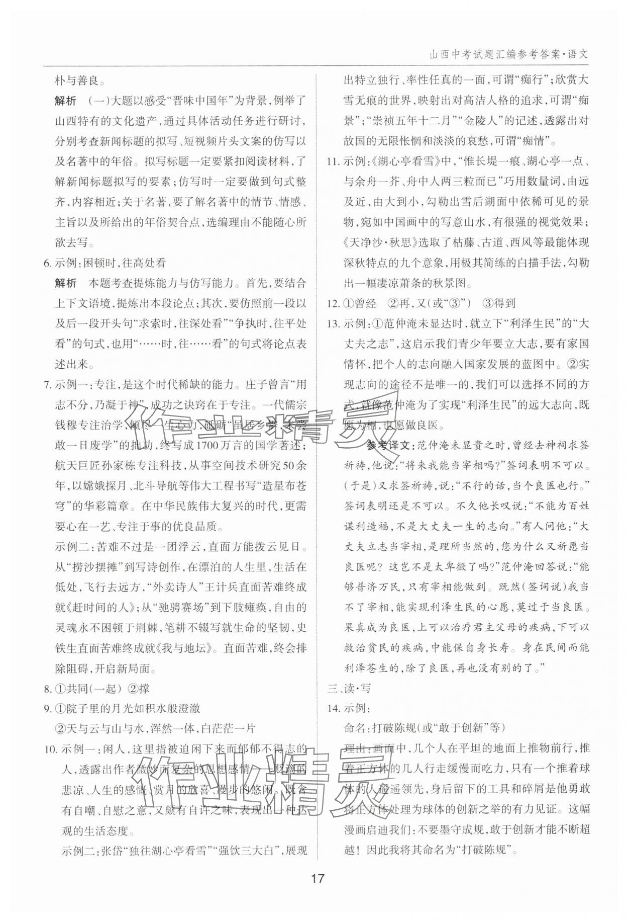 注:目前有些书本章节名称可能整理的还不是很完善,但都是按照顺序排列的,请同学们按照顺序仔细查找。练习册 2025年山西中考试题汇编语文 答案主要是用来给同学们做完题方便对答案用的,请勿直接抄袭。