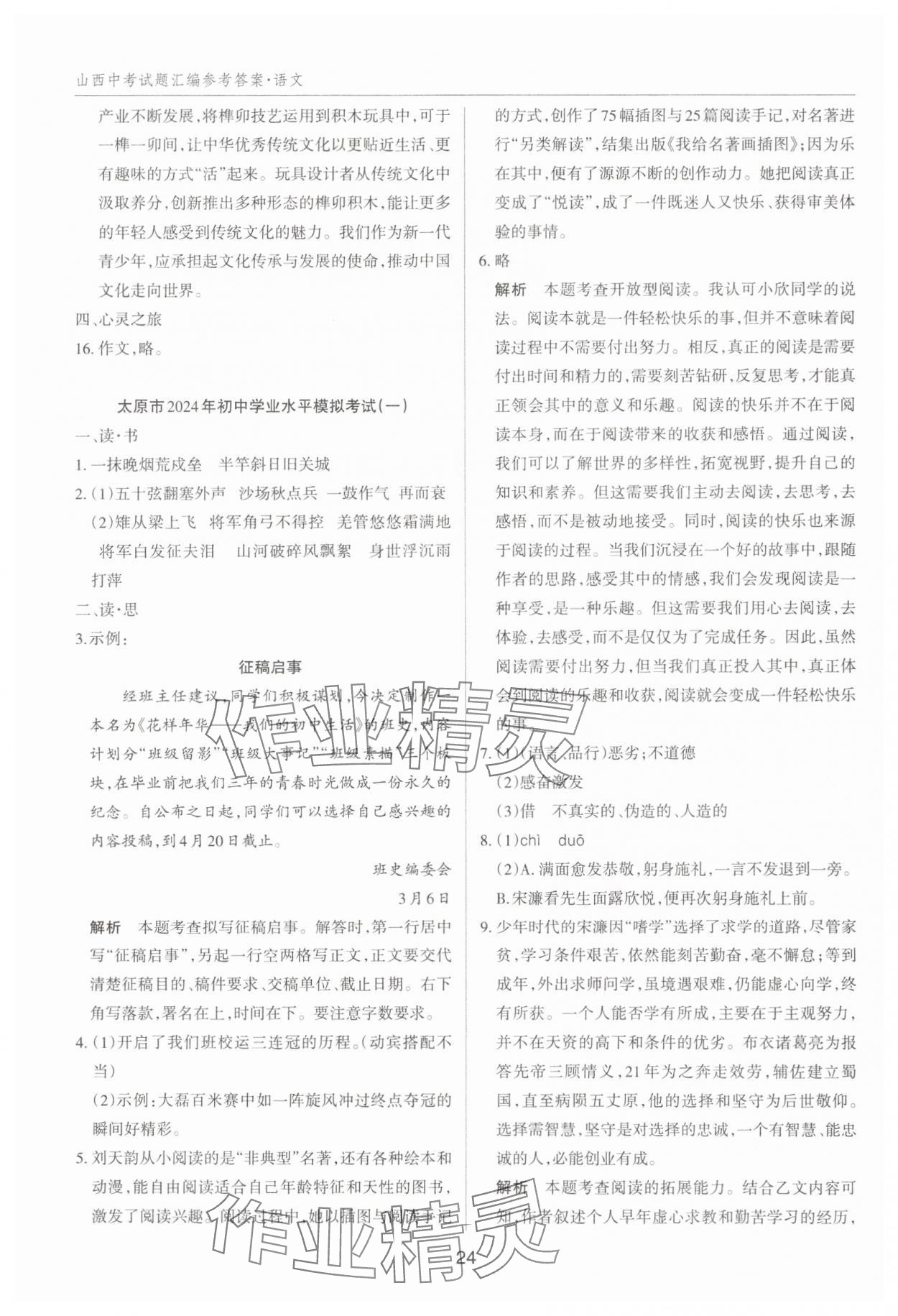 注:目前有些书本章节名称可能整理的还不是很完善,但都是按照顺序排列的,请同学们按照顺序仔细查找。练习册 2025年山西中考试题汇编语文 答案主要是用来给同学们做完题方便对答案用的,请勿直接抄袭。