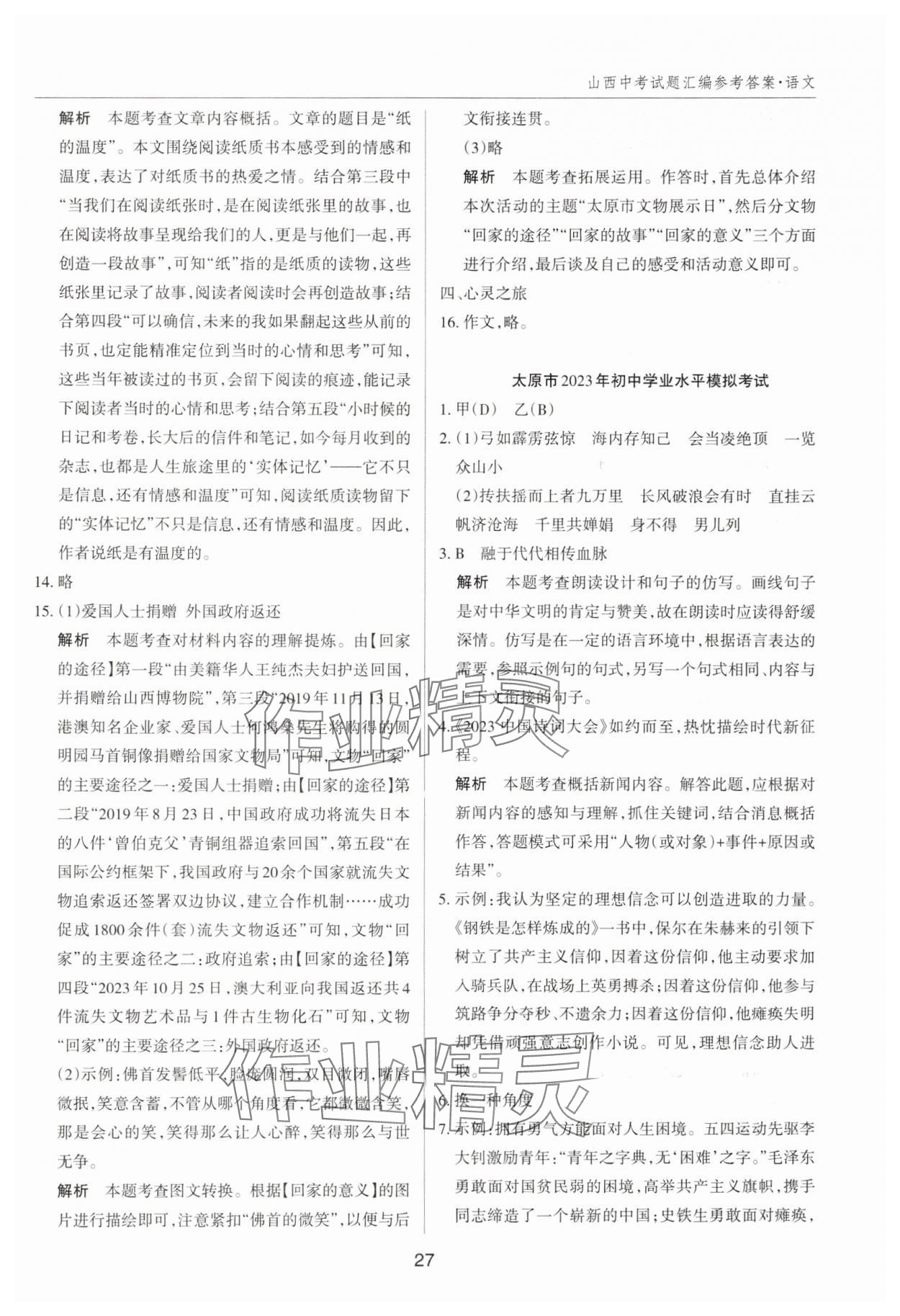 注:目前有些书本章节名称可能整理的还不是很完善,但都是按照顺序排列的,请同学们按照顺序仔细查找。练习册 2025年山西中考试题汇编语文 答案主要是用来给同学们做完题方便对答案用的,请勿直接抄袭。