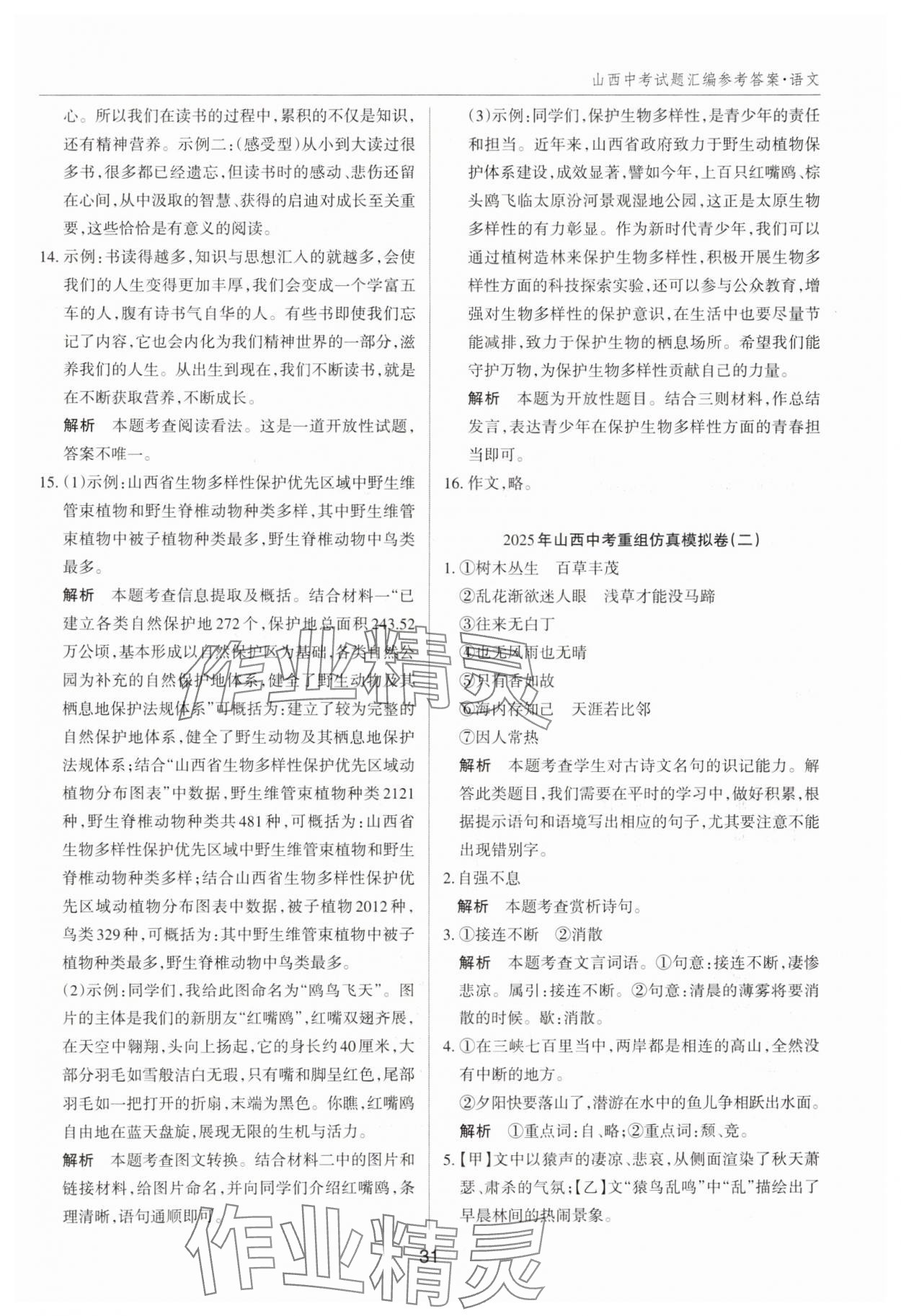 注:目前有些书本章节名称可能整理的还不是很完善,但都是按照顺序排列的,请同学们按照顺序仔细查找。练习册 2025年山西中考试题汇编语文 答案主要是用来给同学们做完题方便对答案用的,请勿直接抄袭。