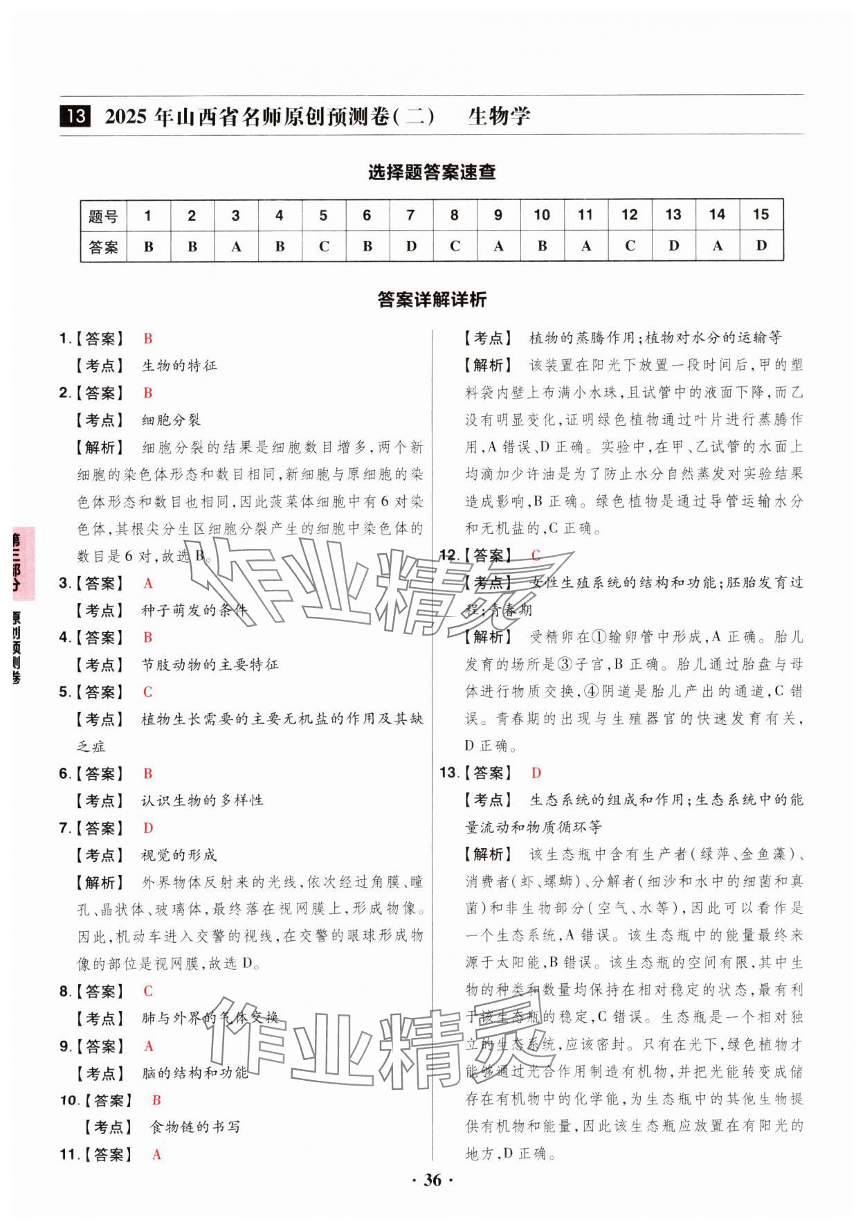注:目前有些书本章节名称可能整理的还不是很完善,但都是按照顺序排列的,请同学们按照顺序仔细查找。练习册 2025年晋一中考山西真题生物 答案主要是用来给同学们做完题方便对答案用的,请勿直接抄袭。