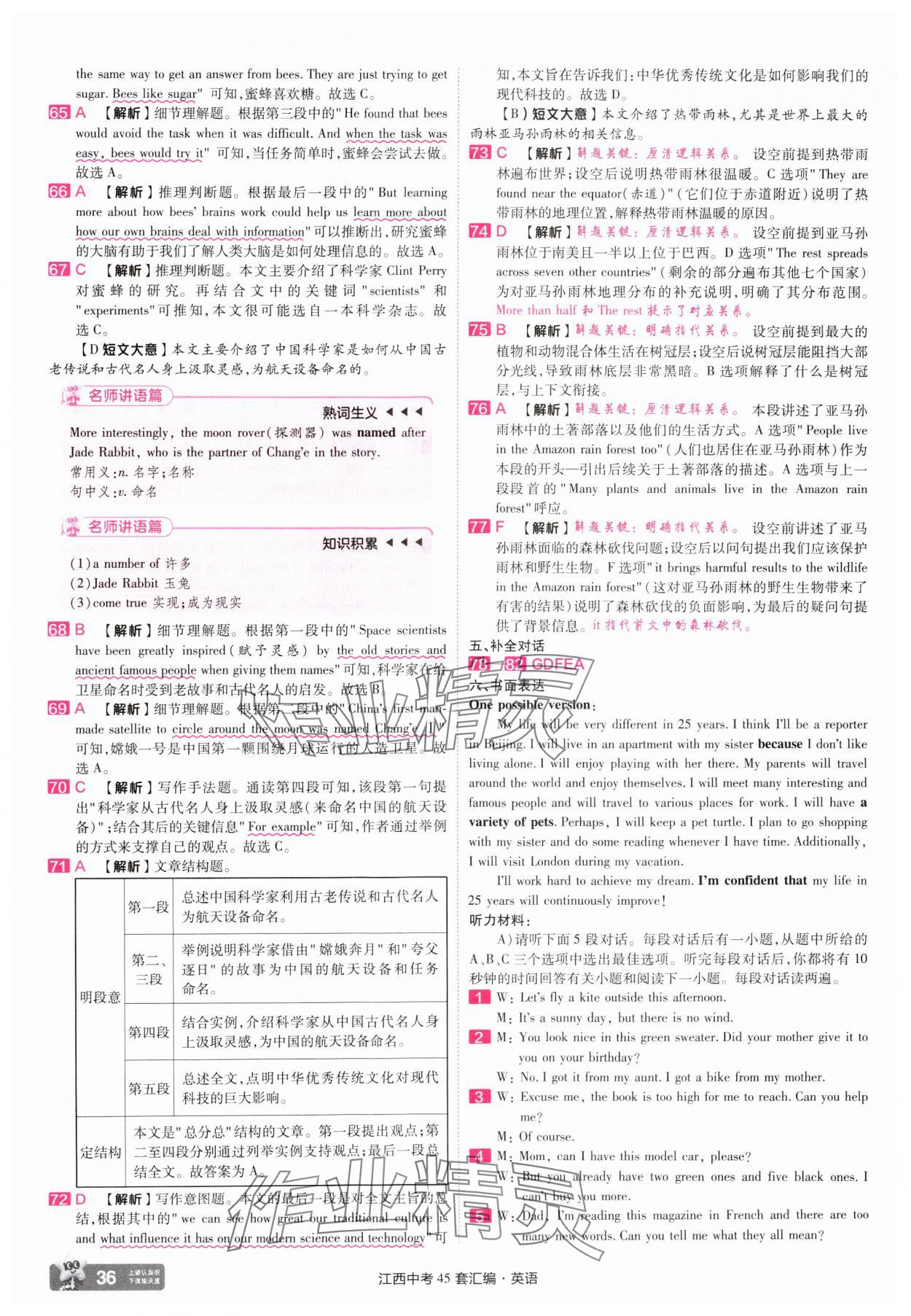 注:目前有些书本章节名称可能整理的还不是很完善,但都是按照顺序排列的,请同学们按照顺序仔细查找。练习册 2025年金考卷中考45套汇编英语江西专版 答案主要是用来给同学们做完题方便对答案用的,请勿直接抄袭。
