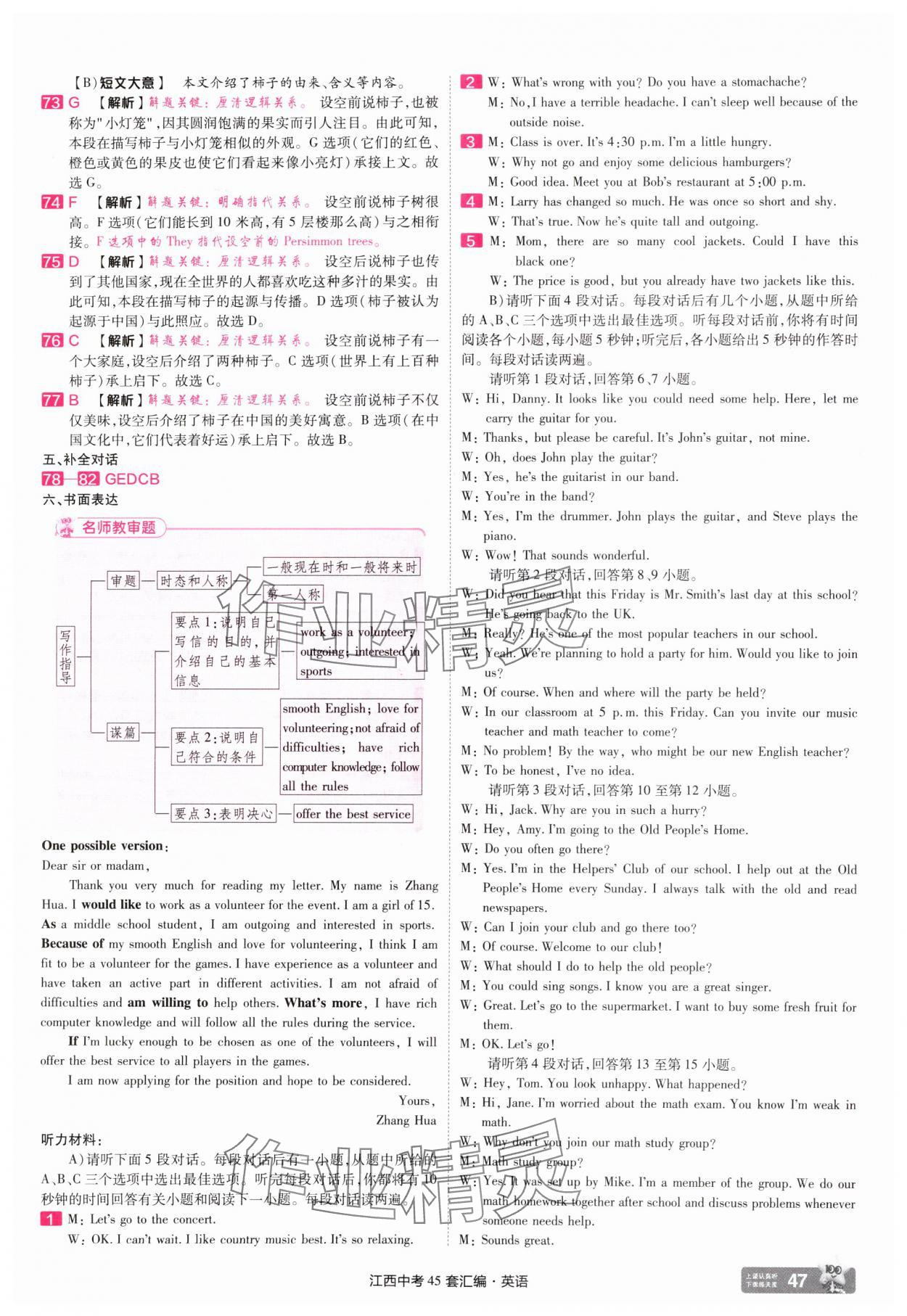 注:目前有些书本章节名称可能整理的还不是很完善,但都是按照顺序排列的,请同学们按照顺序仔细查找。练习册 2025年金考卷中考45套汇编英语江西专版 答案主要是用来给同学们做完题方便对答案用的,请勿直接抄袭。