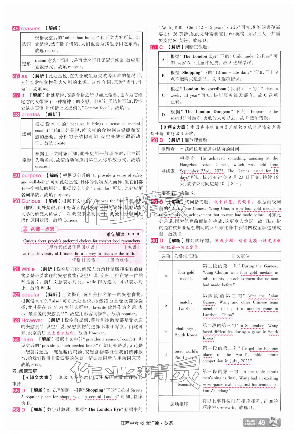 注:目前有些书本章节名称可能整理的还不是很完善,但都是按照顺序排列的,请同学们按照顺序仔细查找。练习册 2025年金考卷中考45套汇编英语江西专版 答案主要是用来给同学们做完题方便对答案用的,请勿直接抄袭。
