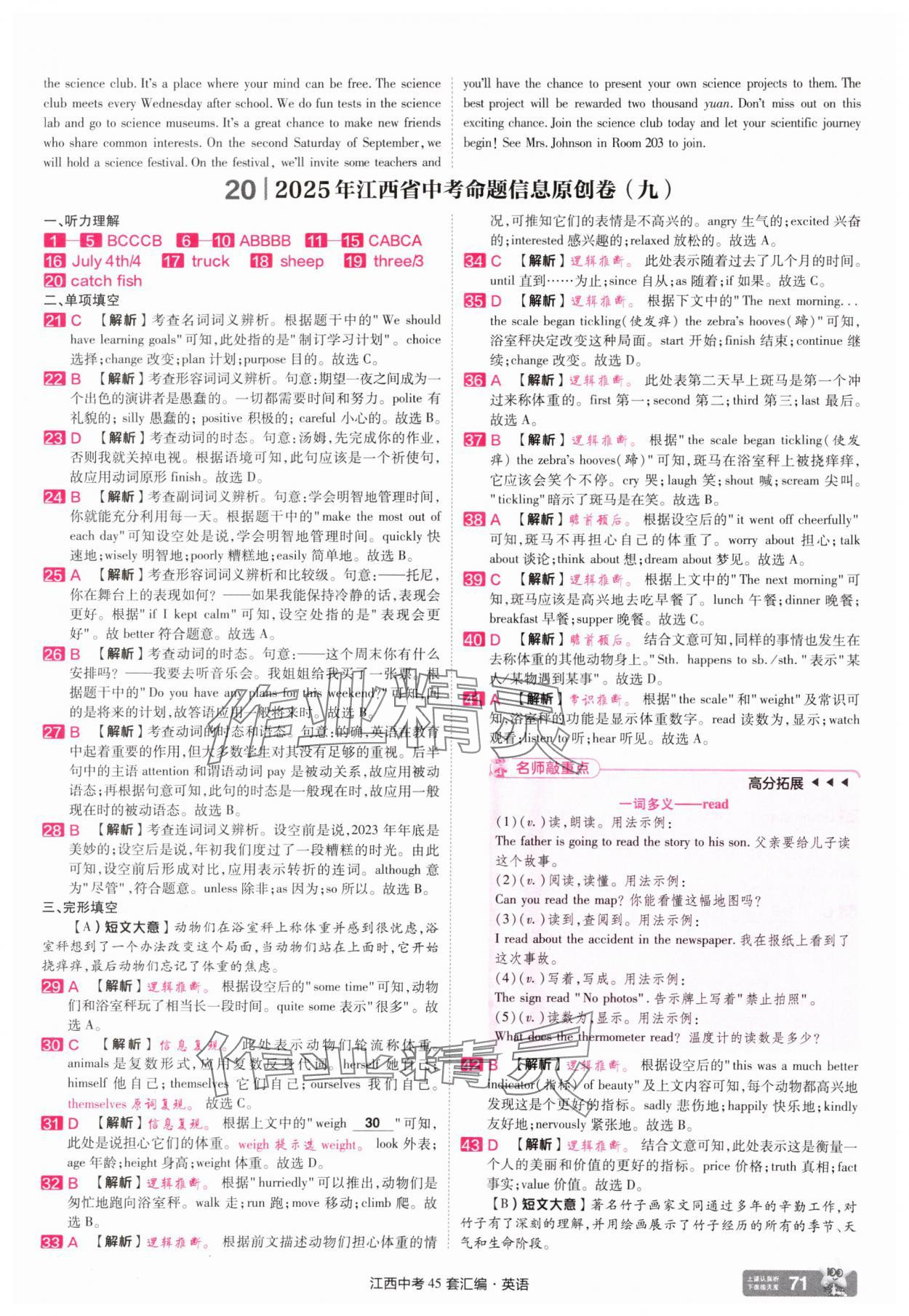 注:目前有些书本章节名称可能整理的还不是很完善,但都是按照顺序排列的,请同学们按照顺序仔细查找。练习册 2025年金考卷中考45套汇编英语江西专版 答案主要是用来给同学们做完题方便对答案用的,请勿直接抄袭。