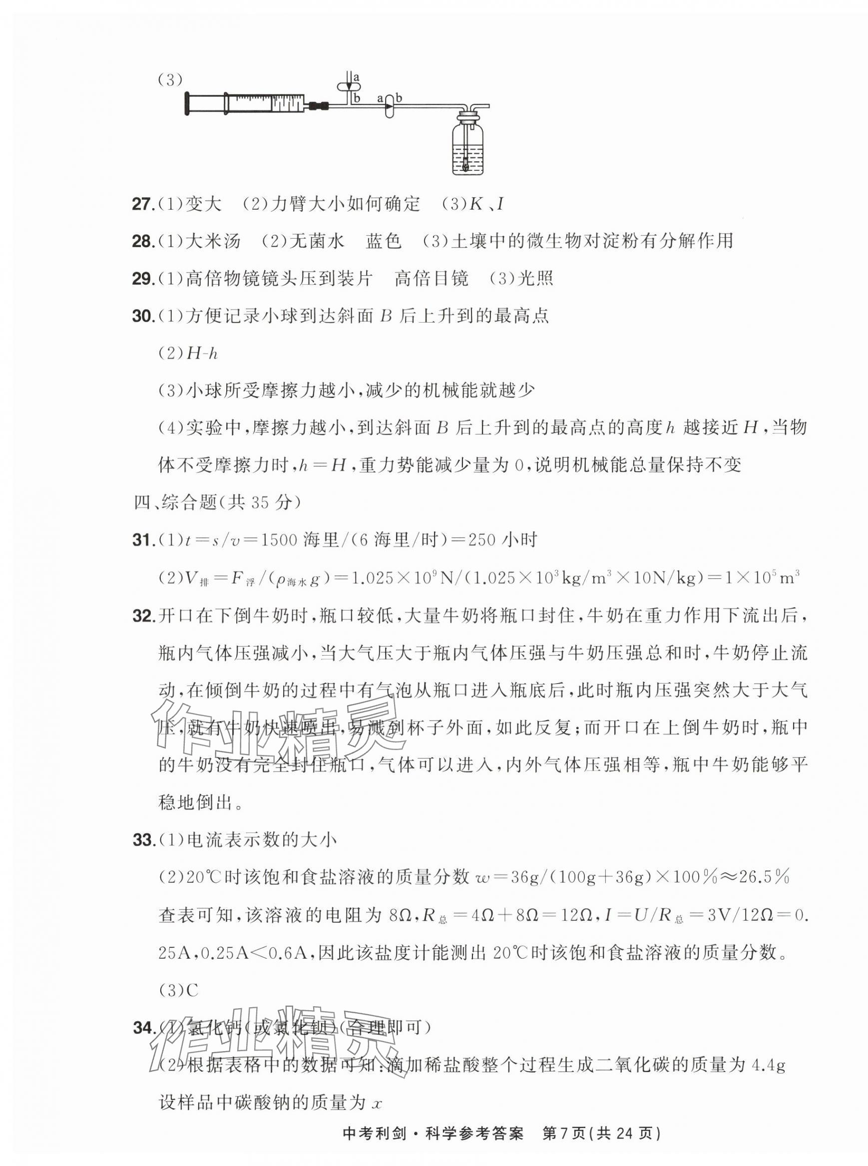 注:目前有些书本章节名称可能整理的还不是很完善,但都是按照顺序排列的,请同学们按照顺序仔细查找。练习册 2025年中考利剑中考试卷汇编科学浙江专版 答案主要是用来给同学们做完题方便对答案用的,请勿直接抄袭。