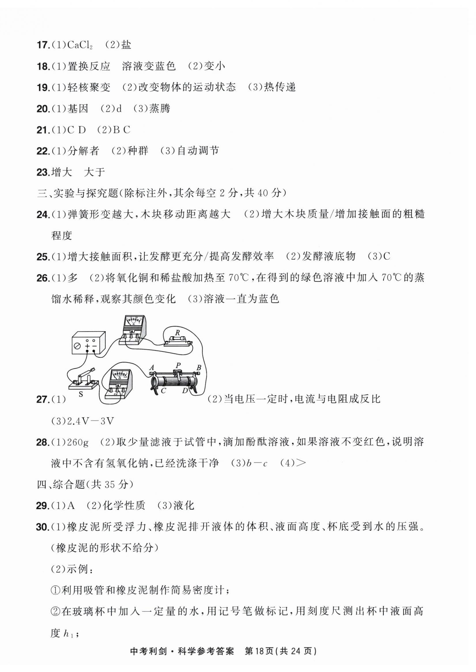 注:目前有些书本章节名称可能整理的还不是很完善,但都是按照顺序排列的,请同学们按照顺序仔细查找。练习册 2025年中考利剑中考试卷汇编科学浙江专版 答案主要是用来给同学们做完题方便对答案用的,请勿直接抄袭。