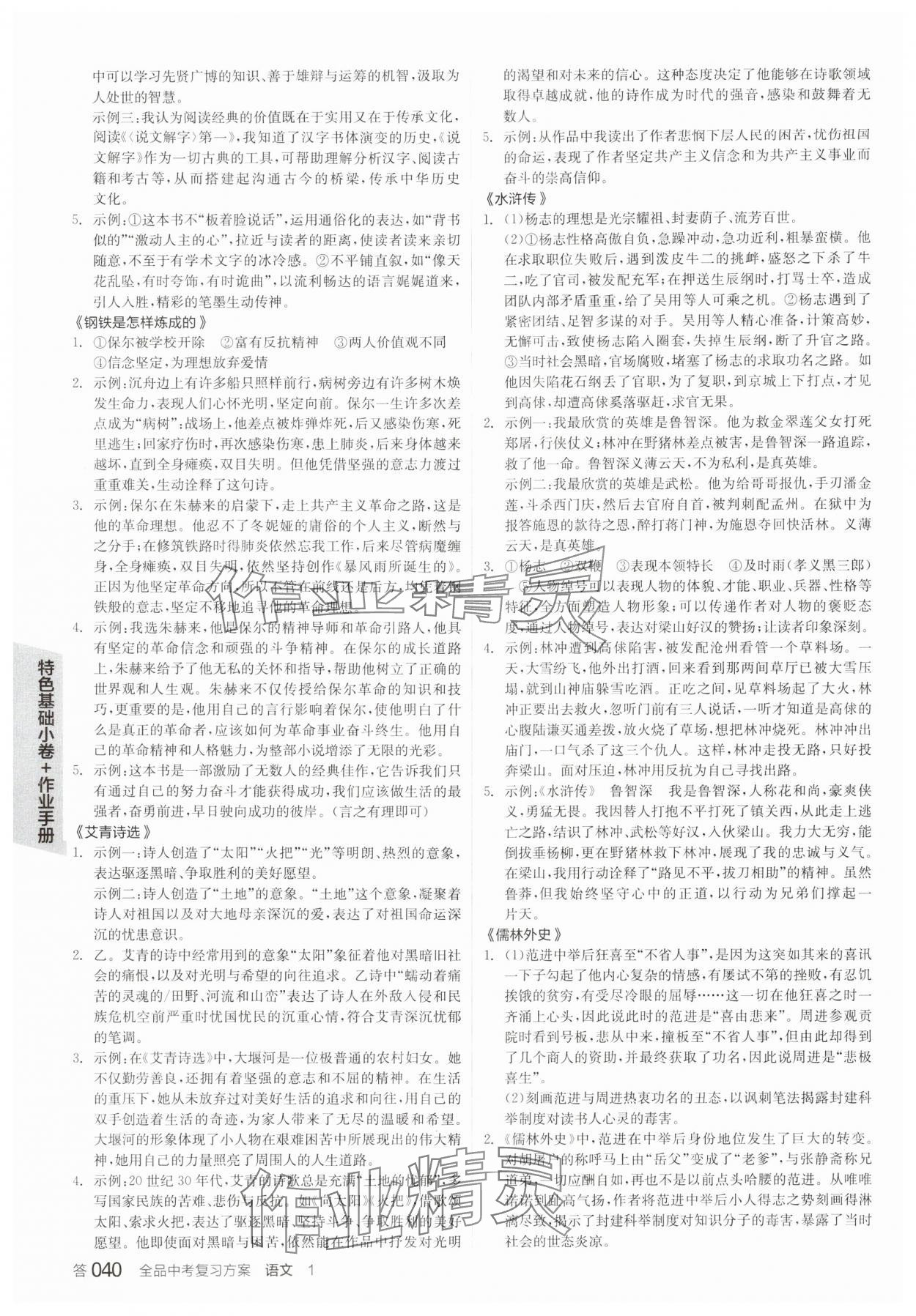 注:目前有些书本章节名称可能整理的还不是很完善,但都是按照顺序排列的,请同学们按照顺序仔细查找。练习册 2025年全品中考复习方案语文内蒙古专版 答案主要是用来给同学们做完题方便对答案用的,请勿直接抄袭。