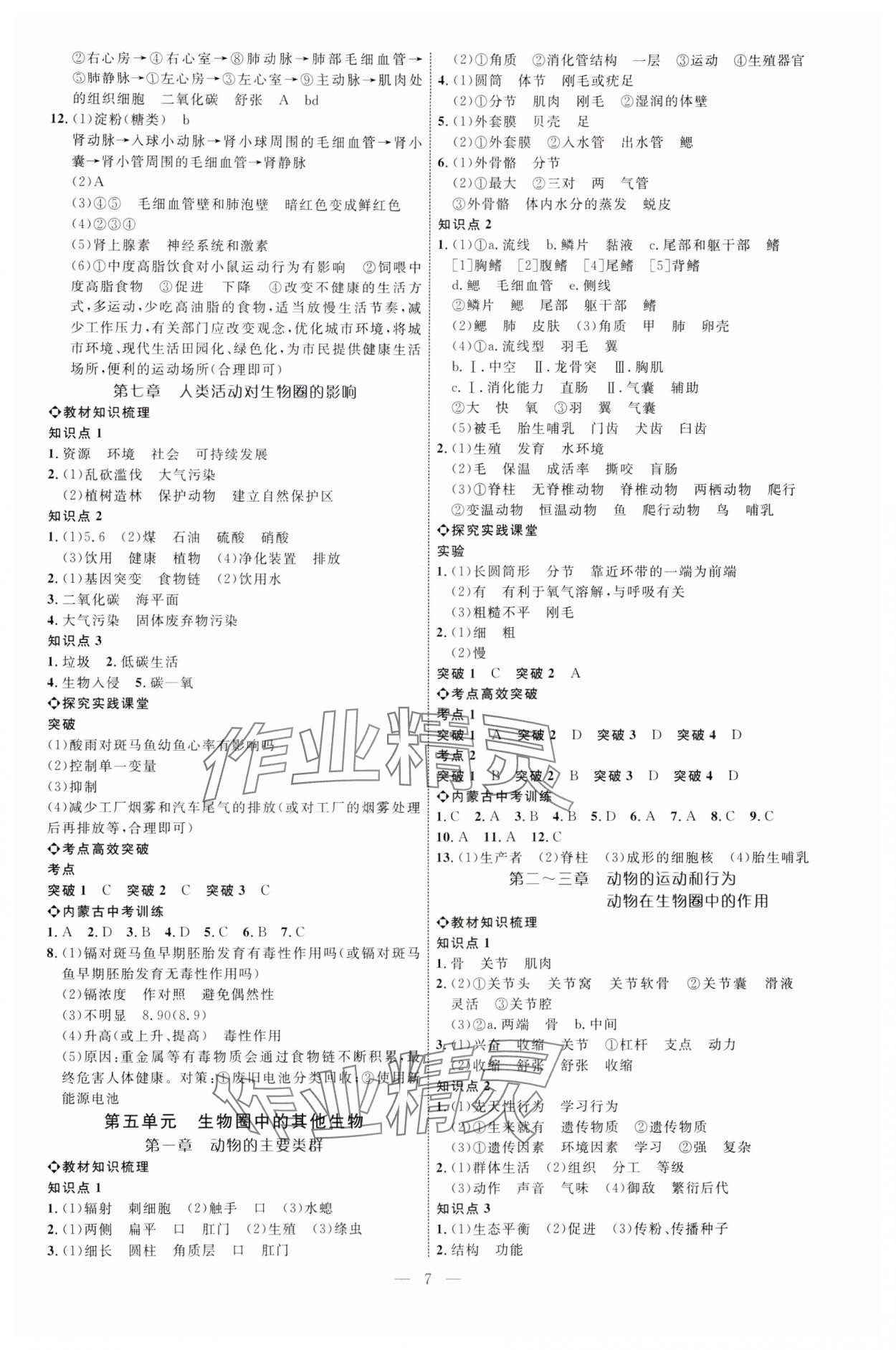 注:目前有些书本章节名称可能整理的还不是很完善,但都是按照顺序排列的,请同学们按照顺序仔细查找。练习册 2025年全程导航初中总复习生物内蒙古专版 答案主要是用来给同学们做完题方便对答案用的,请勿直接抄袭。