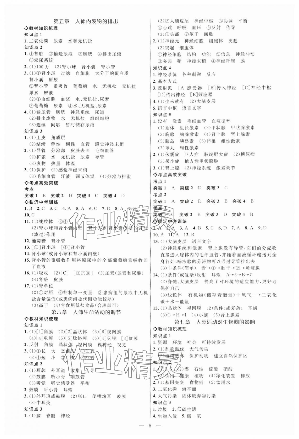 注:目前有些书本章节名称可能整理的还不是很完善,但都是按照顺序排列的,请同学们按照顺序仔细查找。练习册 2025年全程导航初中总复习生物人教版临沂专版 答案主要是用来给同学们做完题方便对答案用的,请勿直接抄袭。