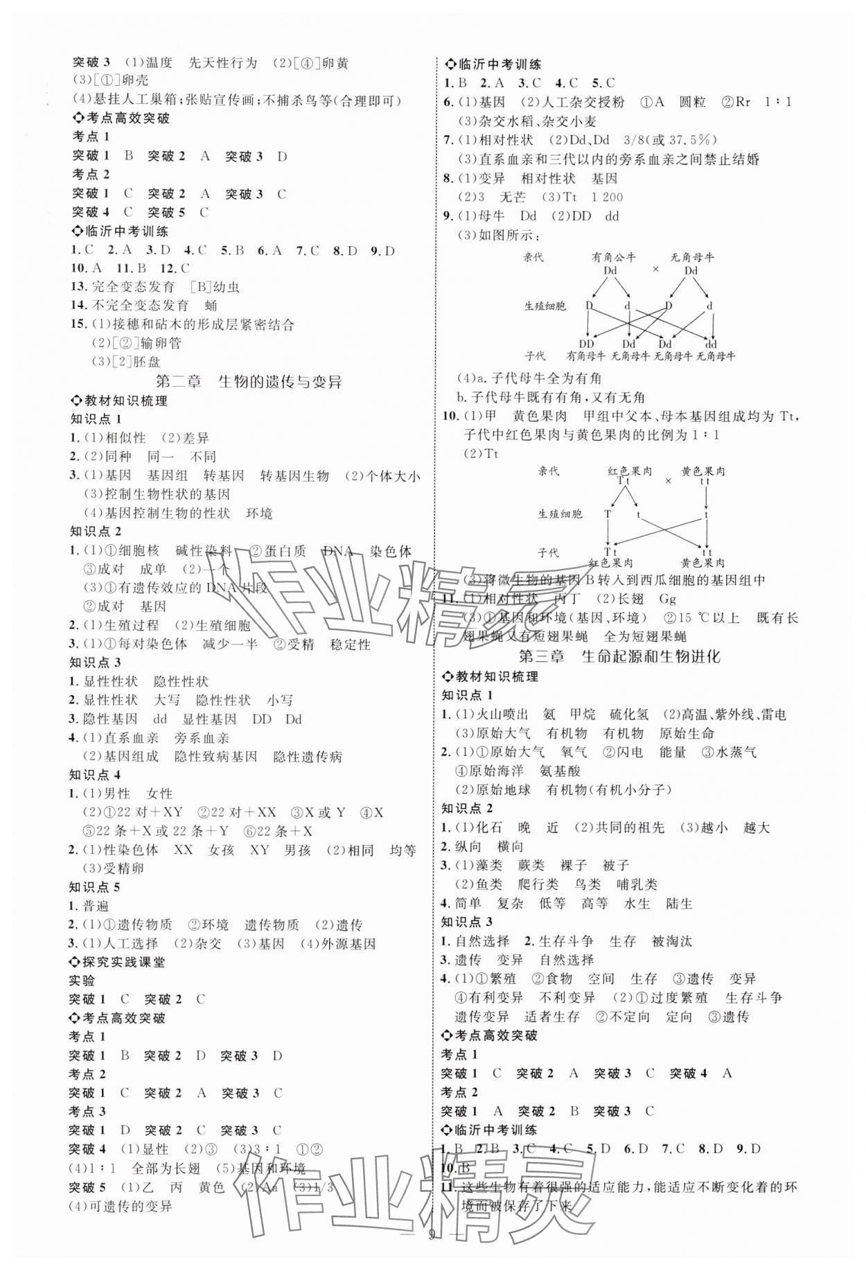 注:目前有些书本章节名称可能整理的还不是很完善,但都是按照顺序排列的,请同学们按照顺序仔细查找。练习册 2025年全程导航初中总复习生物人教版临沂专版 答案主要是用来给同学们做完题方便对答案用的,请勿直接抄袭。