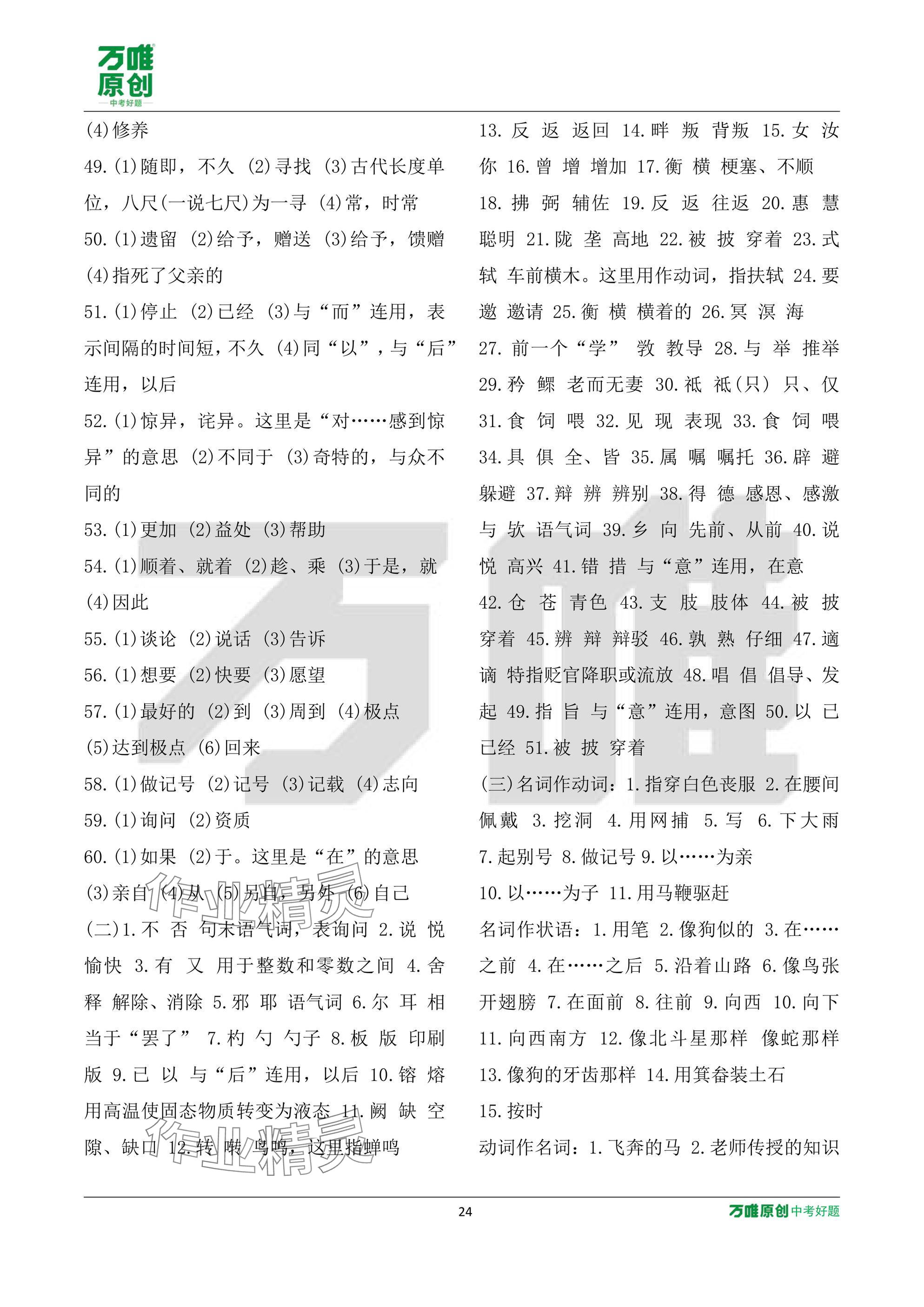 注:目前有些书本章节名称可能整理的还不是很完善,但都是按照顺序排列的,请同学们按照顺序仔细查找。练习册 2025年万唯中考试题研究语文山东专版 答案主要是用来给同学们做完题方便对答案用的,请勿直接抄袭。