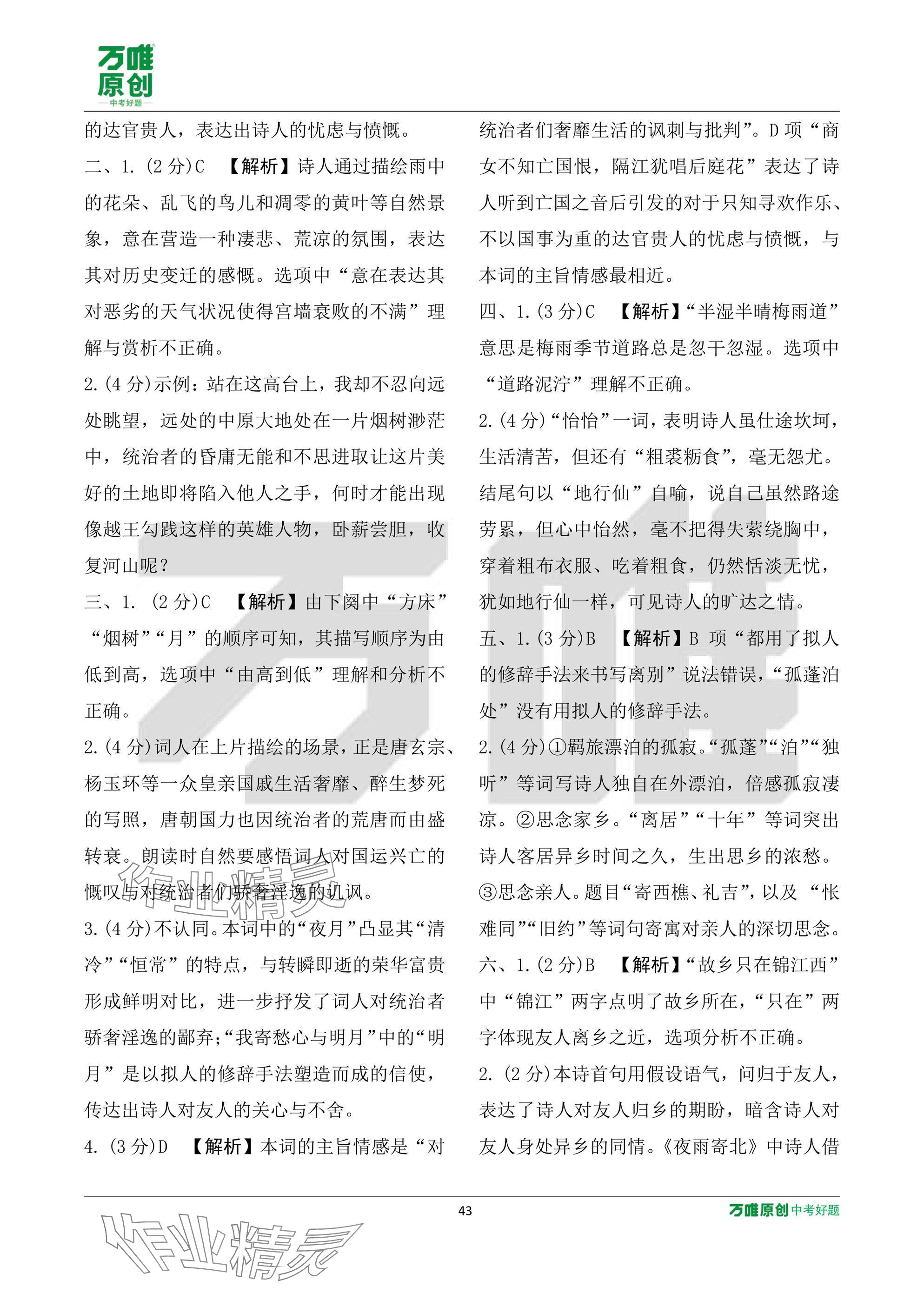 注:目前有些书本章节名称可能整理的还不是很完善,但都是按照顺序排列的,请同学们按照顺序仔细查找。练习册 2025年万唯中考试题研究语文山东专版 答案主要是用来给同学们做完题方便对答案用的,请勿直接抄袭。