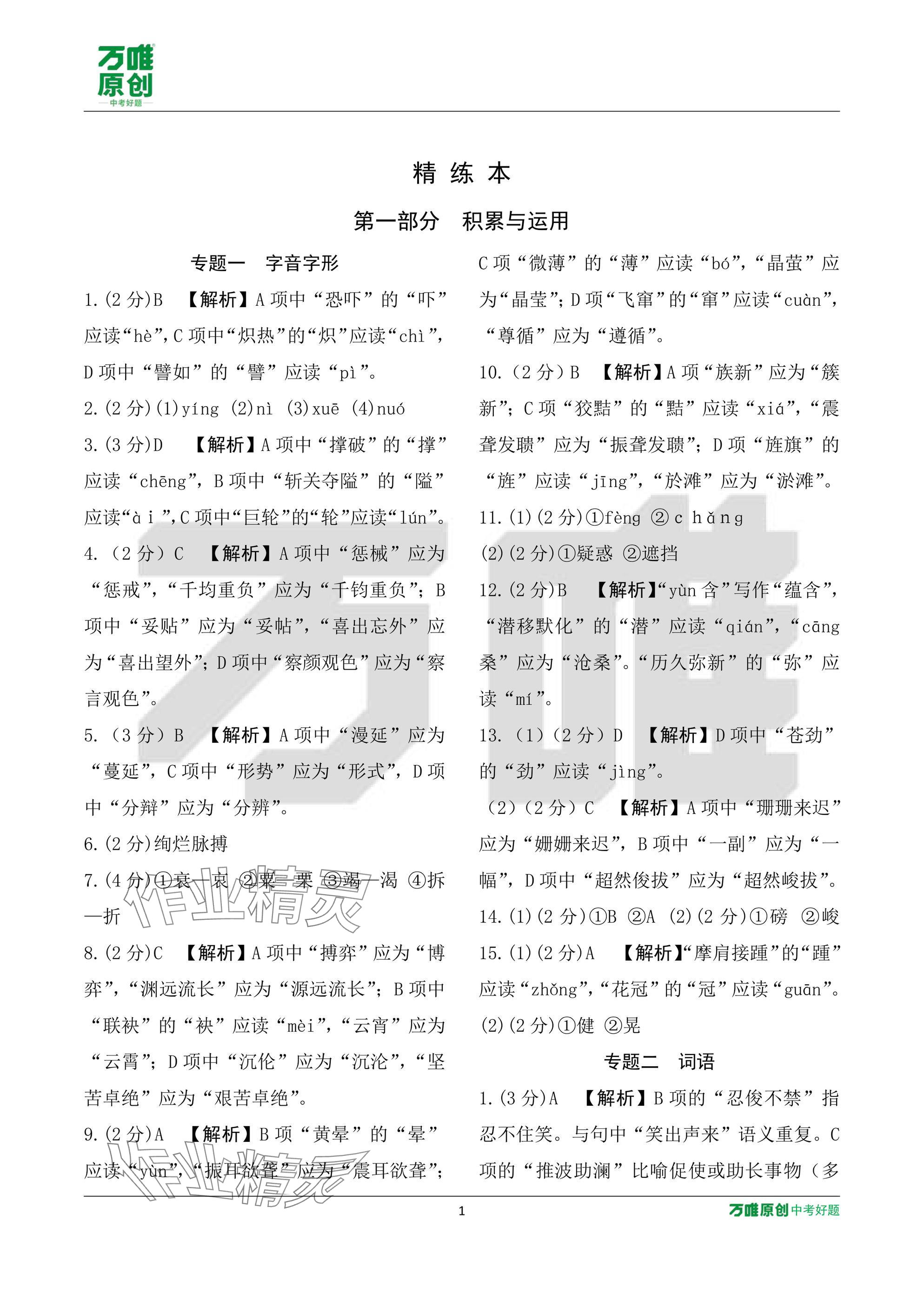注:目前有些书本章节名称可能整理的还不是很完善,但都是按照顺序排列的,请同学们按照顺序仔细查找。练习册 2025年万唯中考试题研究语文山东专版 答案主要是用来给同学们做完题方便对答案用的,请勿直接抄袭。